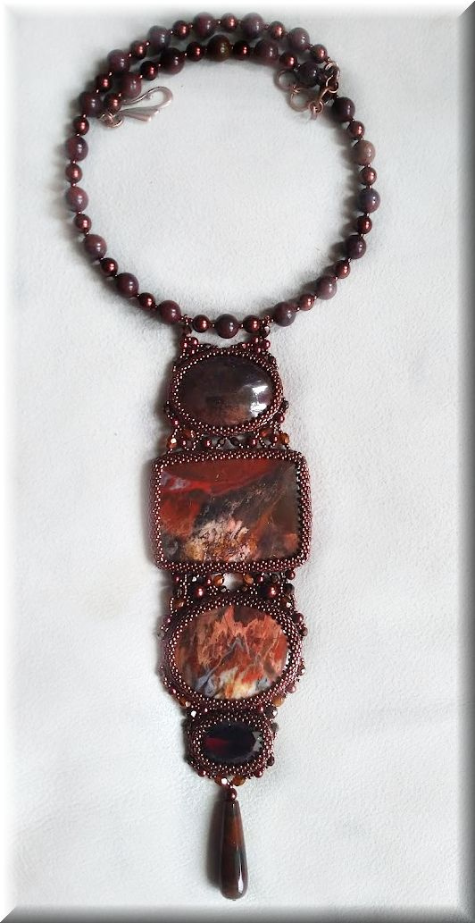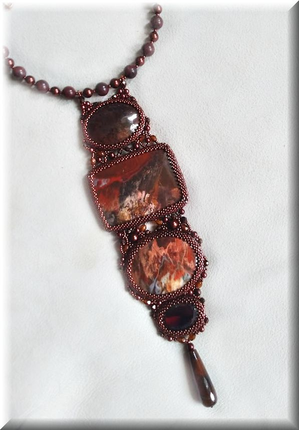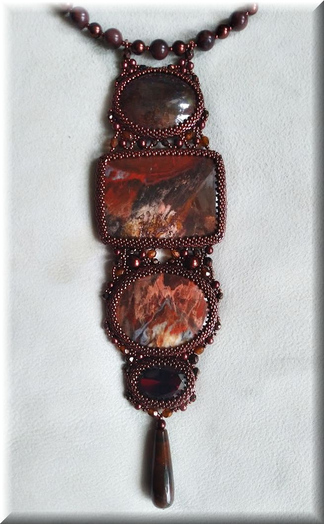 Альмандин, вернее его разновидность фалумом, это первый кабошон, последний — это ограненное ювелирное стекло.