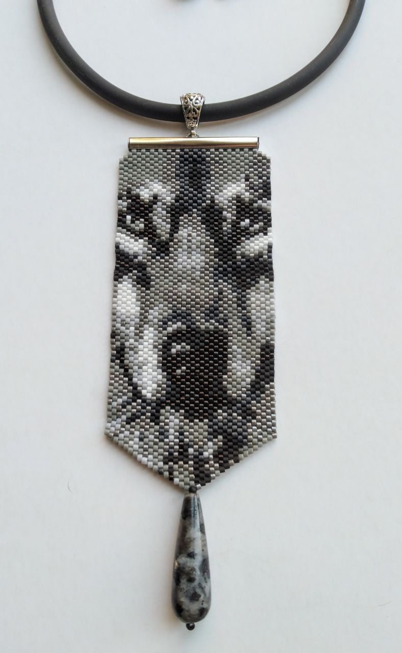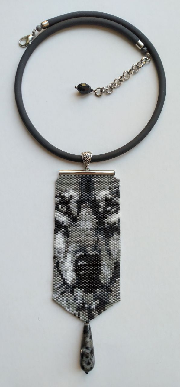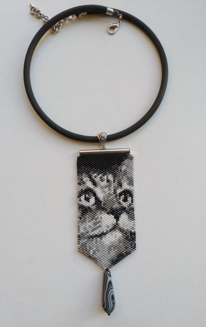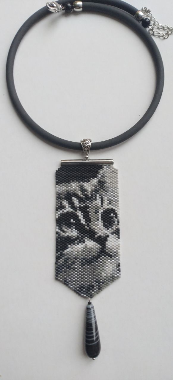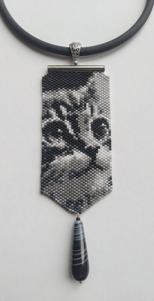 Бисерные кулоны. Идея одной постоянной заказчицы. Сначала попросила сделать к плоскому браслету небольшой кулон, повторяющий рисунок браслета. Потом попросила мини-галстук без камня с кошачьей мордой. Вот собственно это и дало толчок данной серии.
