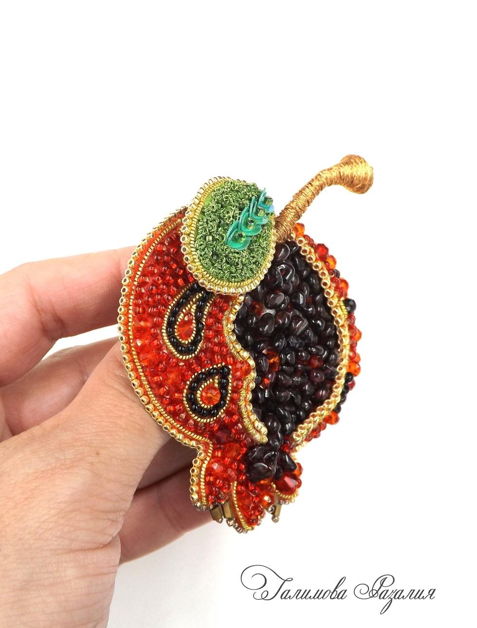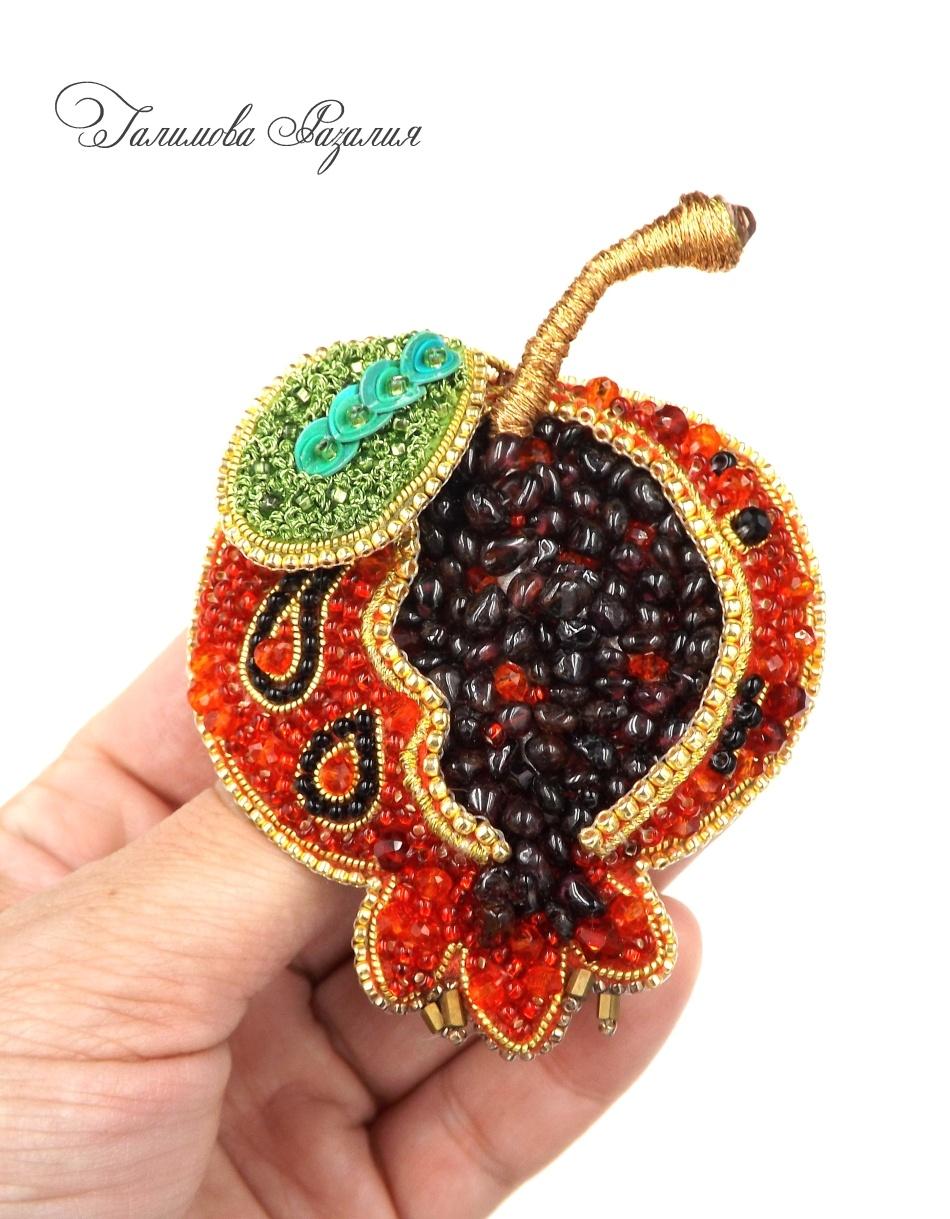 В броши использовала сколы граната, которые мне подарила Ирина (Полночь), канитель, пайетки от Лёли (Шинка).