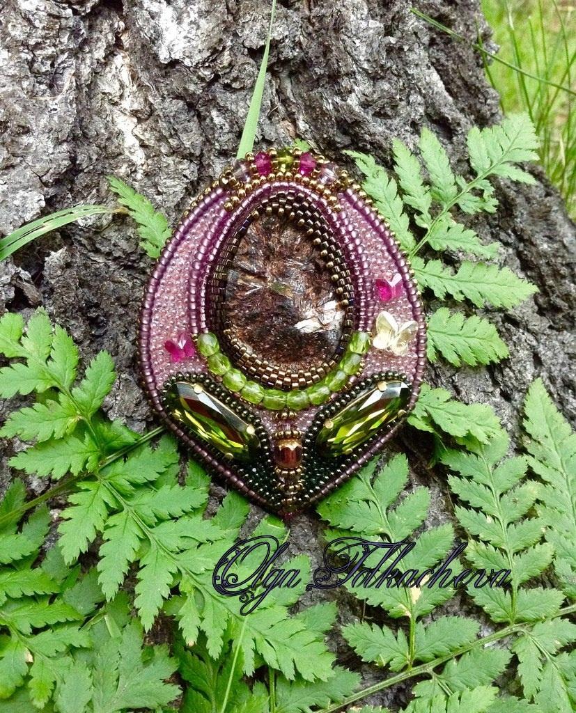 Брошь с астрофиллитом, мне нравится делать адресные броши, закладывая в них особенный смысл. Эту брошь делала для молоденькой девчушки, у которой еще ветер в голове