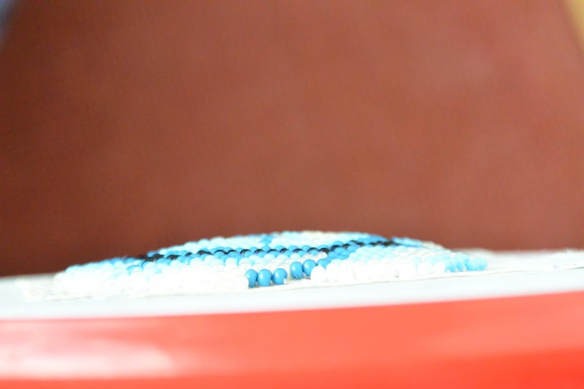 Очень долго не брала бисер в руки, не было настроения. Но вы  такие деловые со своими вышивками по канве раздразнили и меня. Порылась в своей коробочке, подобрала синий (других цветов — по два оттенка всего  ) и начала читать, вышивать, пороть и вновь вышивать. Само небо мне подмигнуло, так как в магазин, где покупаю разные мелочи хозяйка завезла Аиду. Купила по полметра для 10 чеха и 15 тохо.