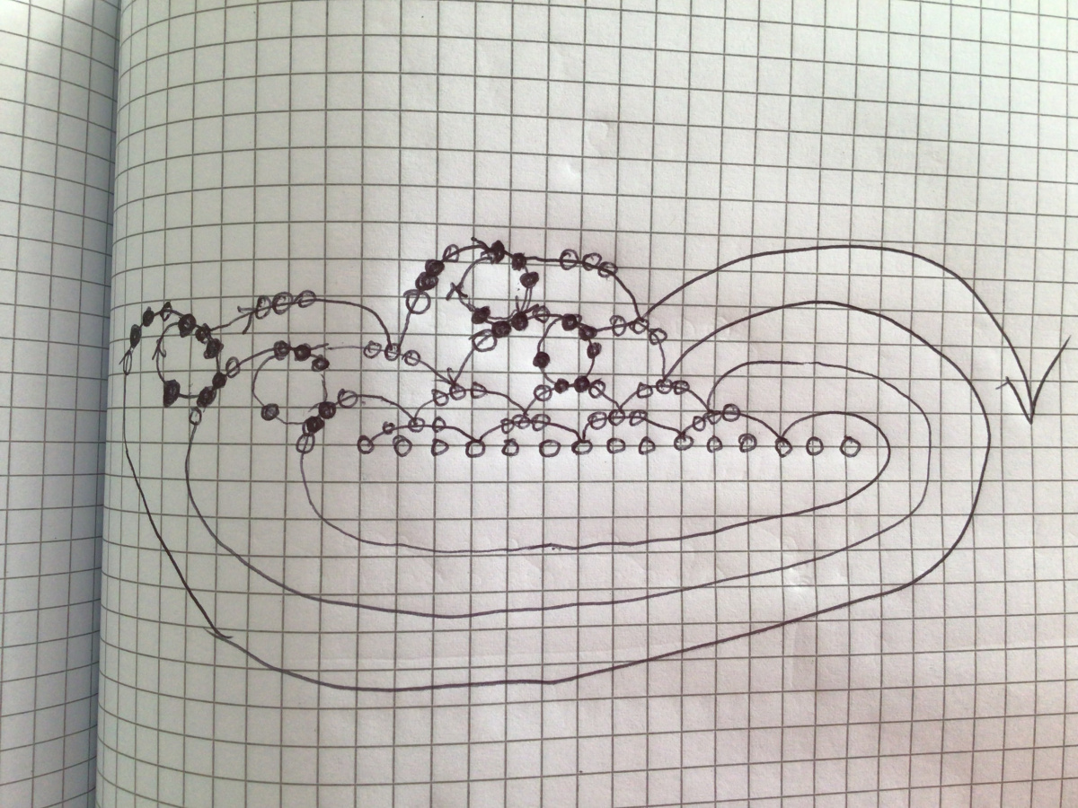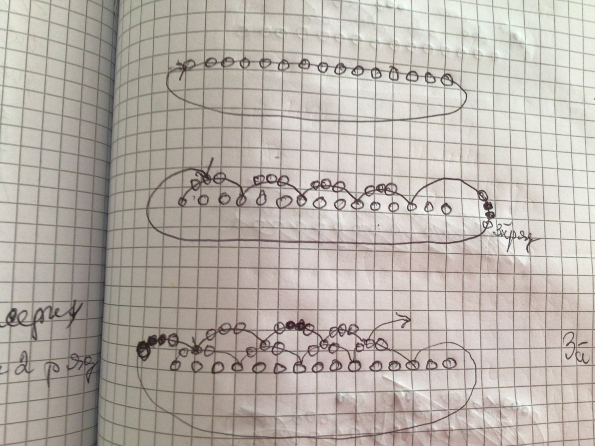 Если хотите, сегодня вечером нарисую. Просто это моя идея взять двойной набор. Их три вида этих полян… десяткой будет толстоватенько. И делала на леске. Получилось стромко и толстенько. Не знаю какой он буде на десятке, если будет мягкий. На пятнашке иногда проваливаются цветочки. И только когда прошёлся по серединкам, этот дефект исчезает. Вечером нарисую.