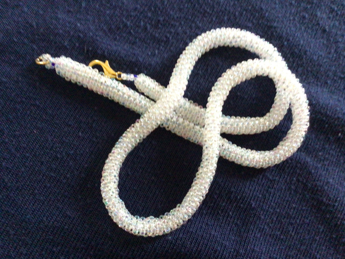 Был давний предавний капризик у меня. Встретился в нете некий жгут зелёного цвета из бусин разных по величине. Лежал он очень расслабленно и для меня загадочно. Нигде не было к нему хоть каких-то объяснений. Ну проглотила своё желание и пошла дальше жить. И вдруг опять в нете пришла разгадка, Оказалось простой квадратный жгут…. Мама моя… А ларчик-то просто открывался…… ха!!! Взяла какие были…восьмерка в наличии, правда всего по пакетику, из которого не сильно то и разгуляешься. Ну ниче, по ходу чего-нибудь придумаю! И закипела. Вечером села, вечером другого дня готов!!! Надо бы и браслетик к нему. Слепила. Ну вот. Не Бог весть какая работа, зато каприз мой воплотился. А самое главное быстро. До этого сплёлся другой быстрый жгутик, тоже без выкрутас, но с бензиновым блеском. На солнце сияет. Хоть и простая мозаика на 5, но довольнааааа выше крыши. Одним словом Нра!