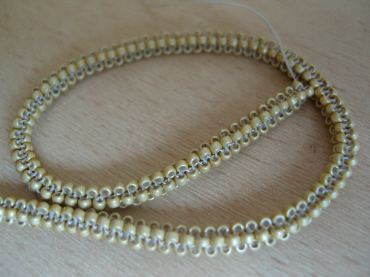 вот этот жгутик, я его 10 лет назад плела, бисер матовое золото, тохо 15.
