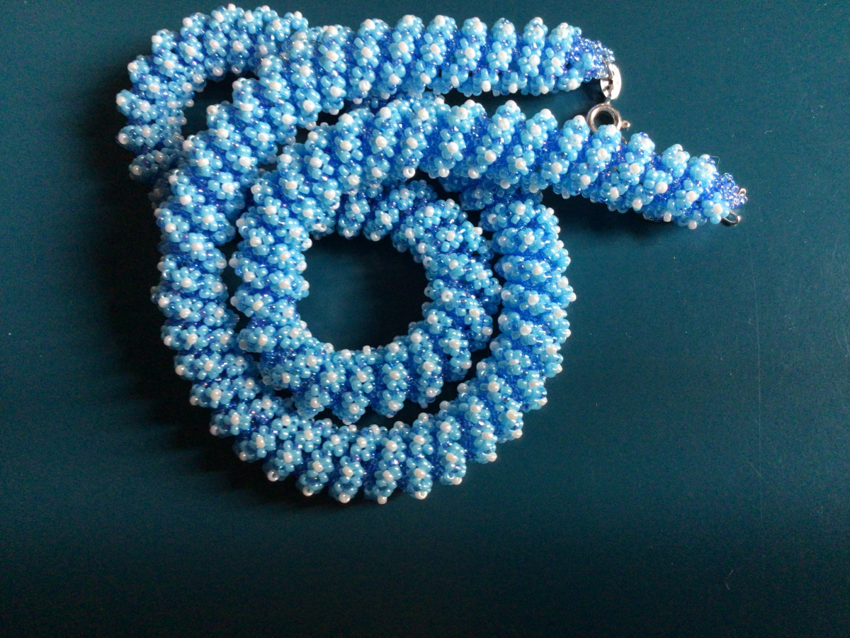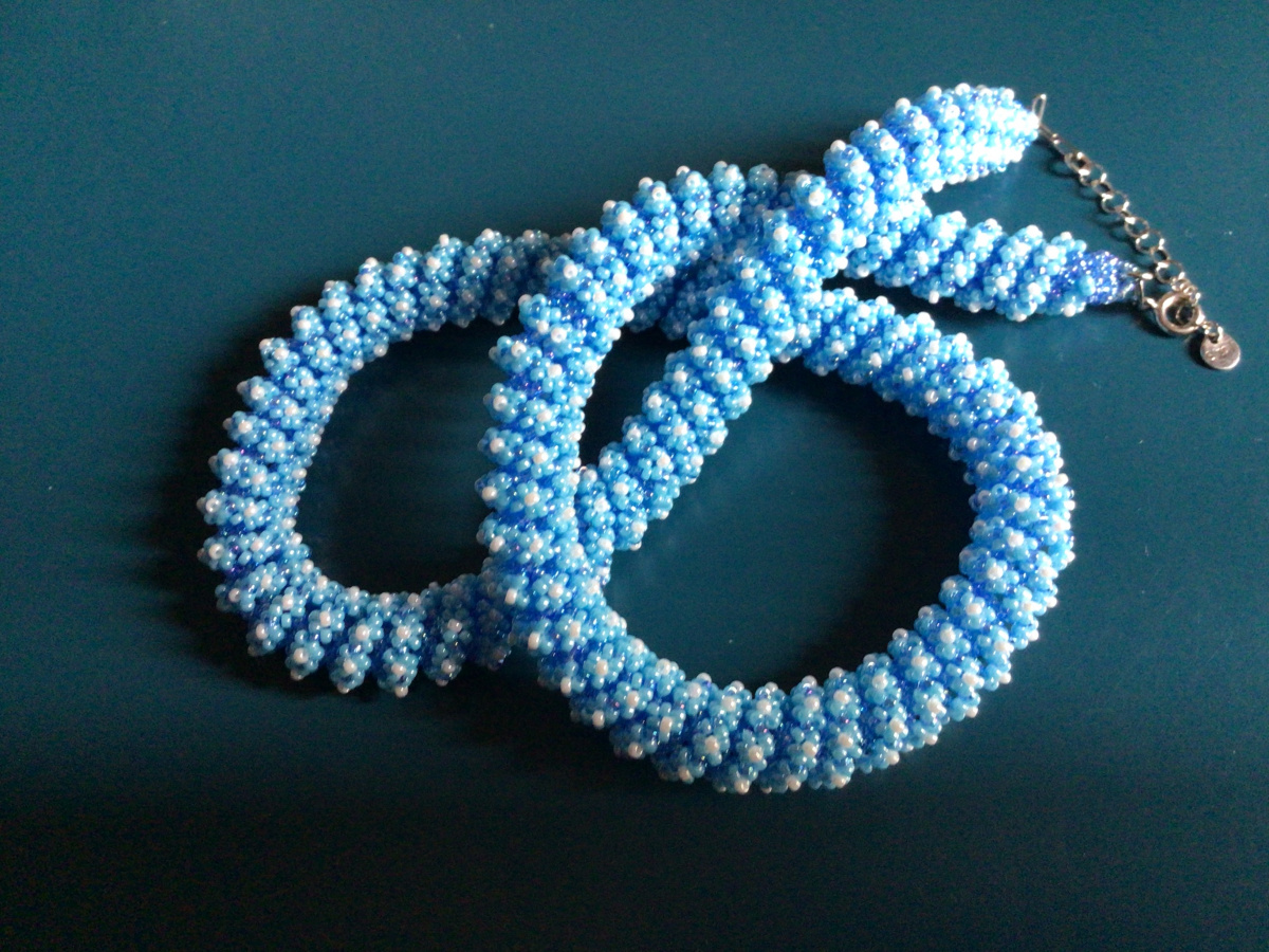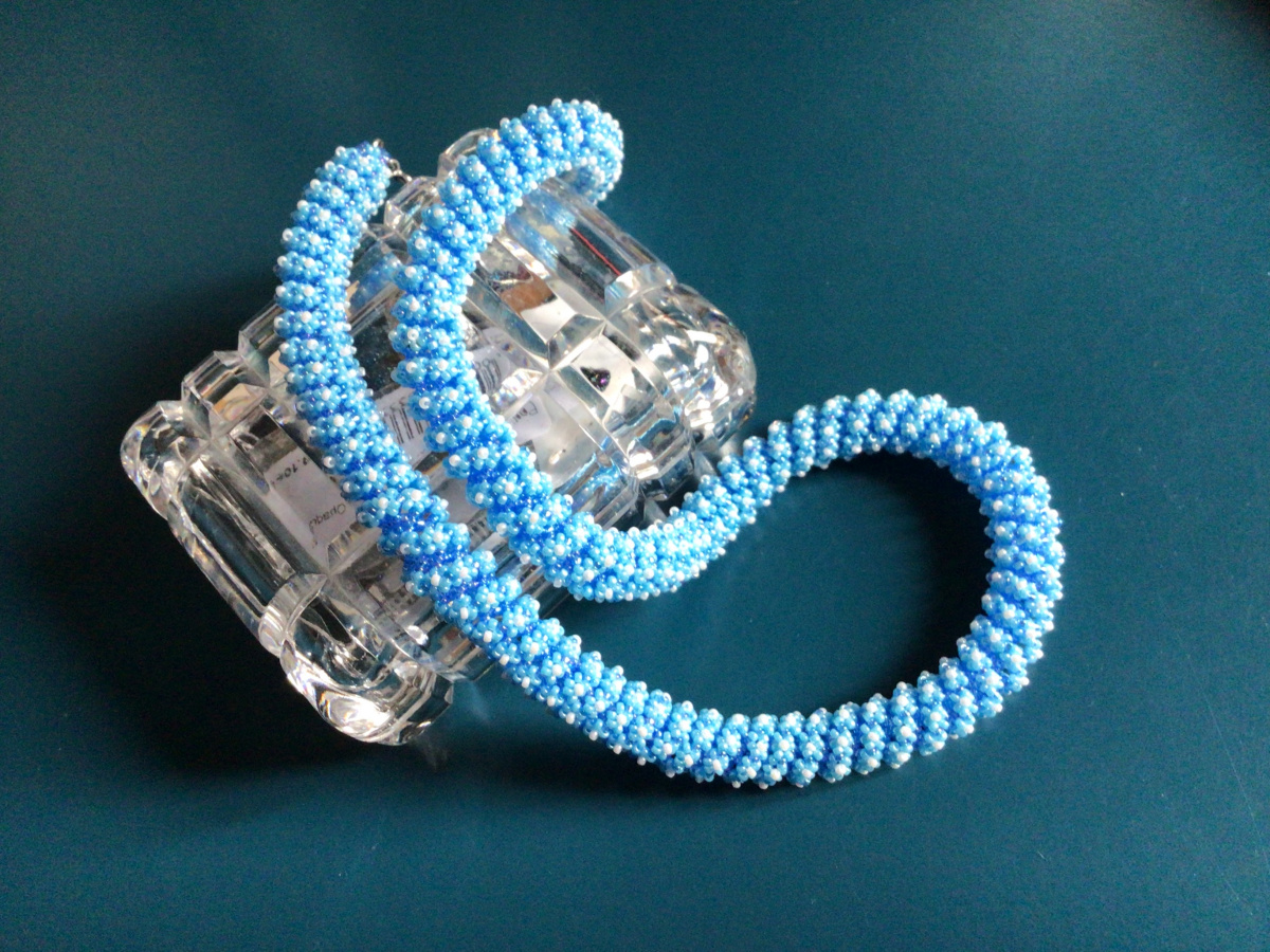 О!!! Вспомнила!!! Есть неопубликованная работа. И даже голубого цвета. И нравится мне. Однако есть две ошибки, поэтому и не публиковала. Изредка ношу его. Повтор.