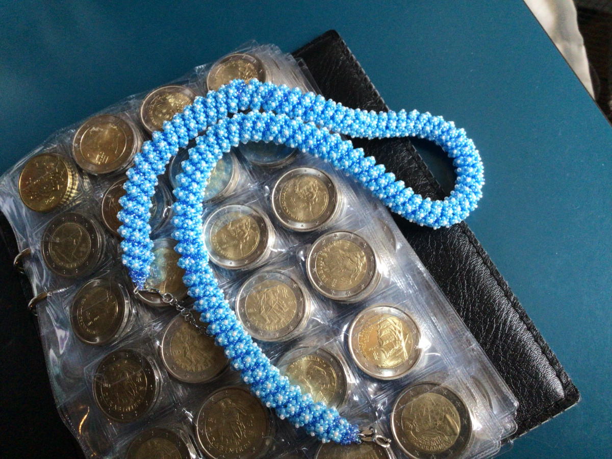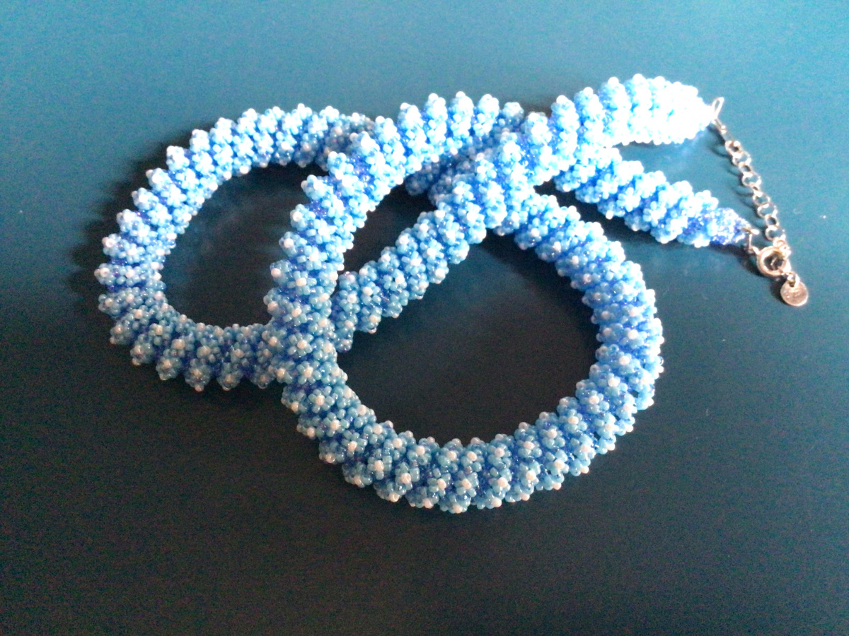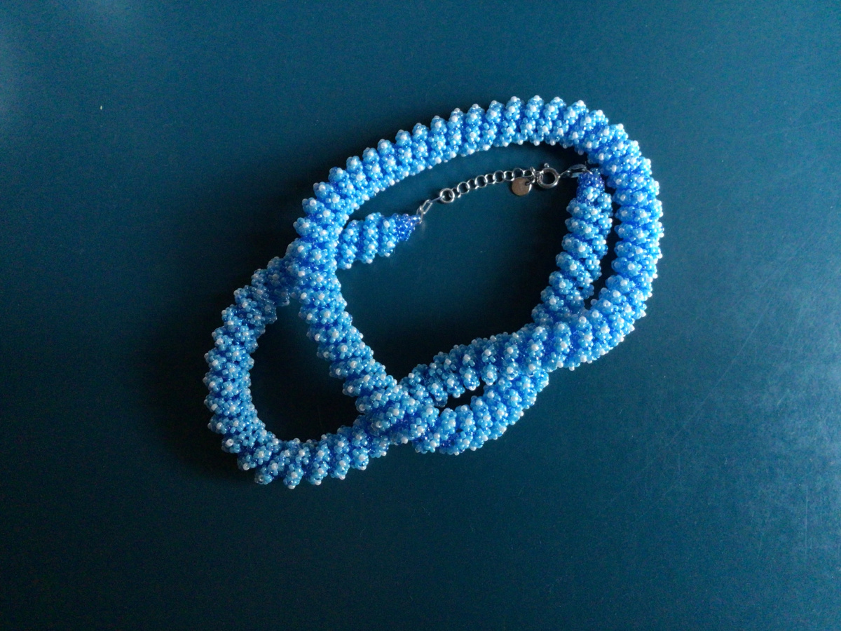 О!!! Вспомнила!!! Есть неопубликованная работа. И даже голубого цвета. И нравится мне. Однако есть две ошибки, поэтому и не публиковала. Изредка ношу его. Повтор.