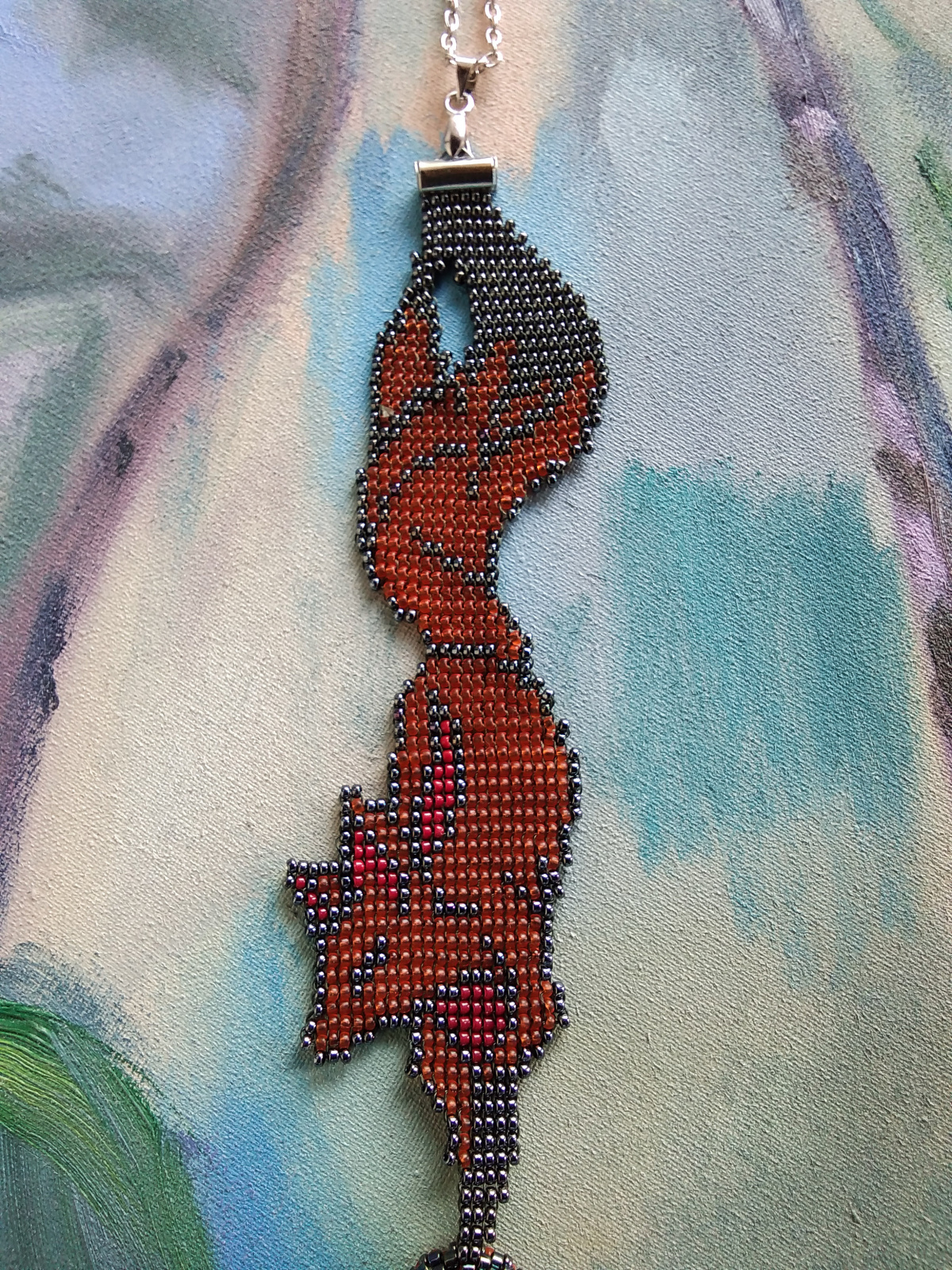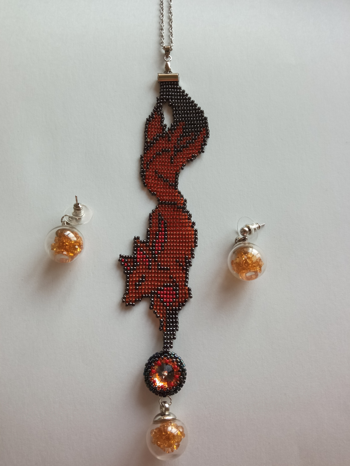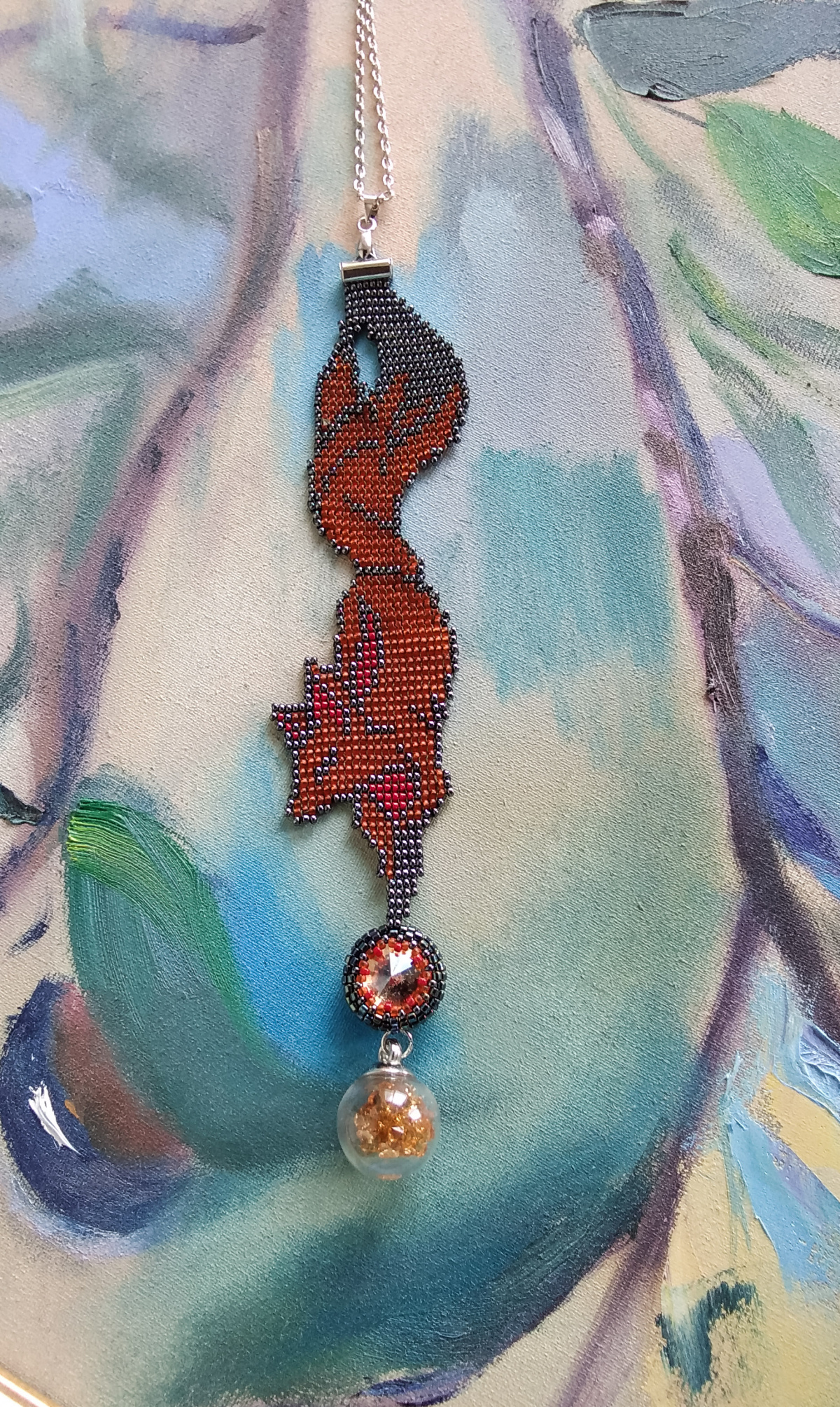 Нет, на самом деле схема изначально была под браслет. Но на моей тонкой руке вся красота теряется, даже не смотря на то, что плелась лисичка из 15-ки ТОНО. А делать ещё один чокер не хотелось. Да и вдруг внезапно появившаяся будущая хозяйка лисы поддержала идею кулона.