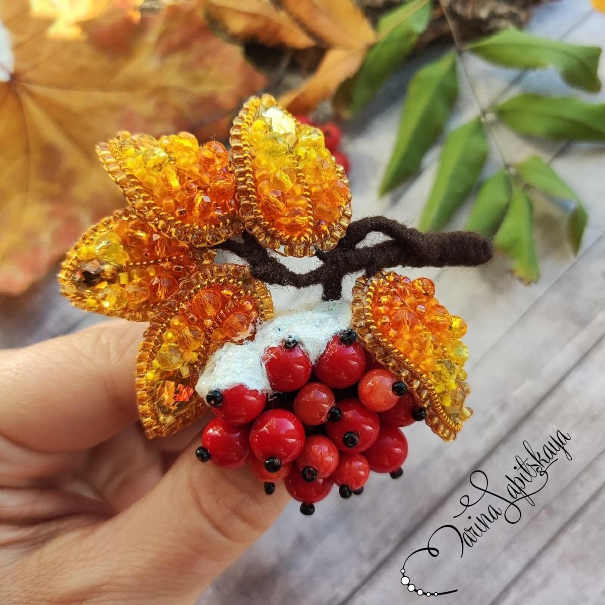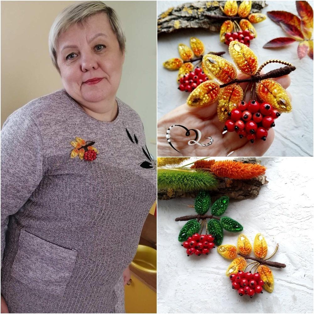 Можно и на себе, я, конечно, сначала испытывала на своей одежде). Лучше лежит на плотной ткани, особенно на пиджаках и пальто. Удобнее всего цеплять на ткань, которая лежит на горизонтальной поверхности. В идеале на первый листик веточки хорошо бы сделать застежку-кнопку, но, в принципе, эти 2 держат хорошо). Фото на клиентке