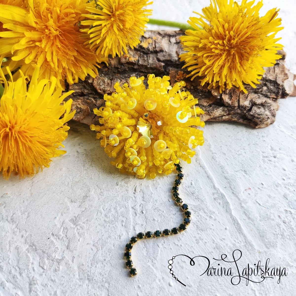 В конце августа заказали одуванчики), я уже привыкла, что в декабре заказывают подснежники, в марте — ёлочку, в августе — весенние цветочки). Серьги одуванчики делала в первый раз)