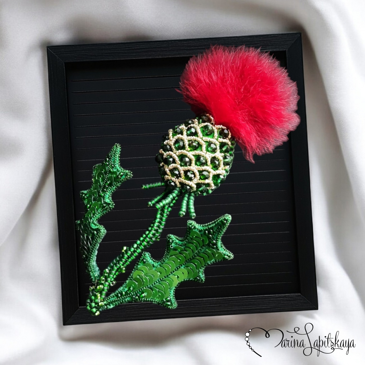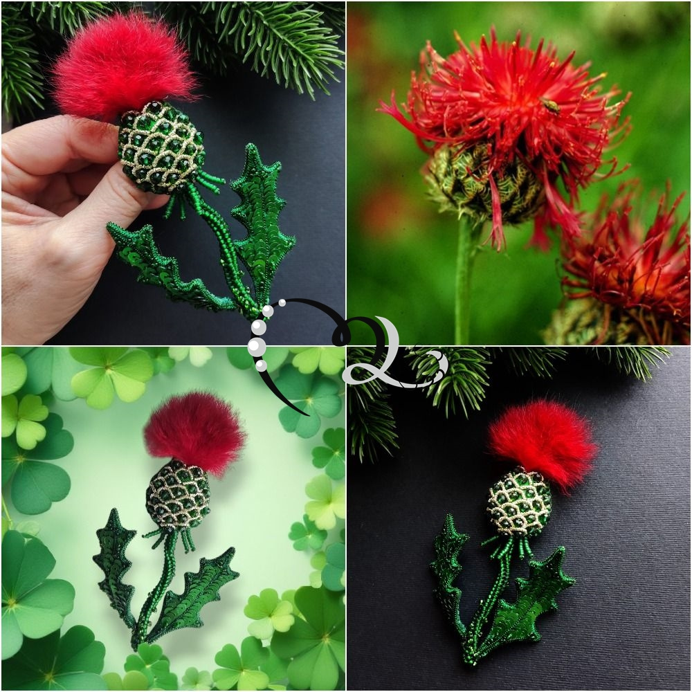 Заказали чертополох, а перьев фиолетовых не было, но заказчице так хотелось такую брошь, что предложила сделать с мехом, и вот что вышло). Делала по МК Ангелины Пеях, но с упрощениями и поменьше размером