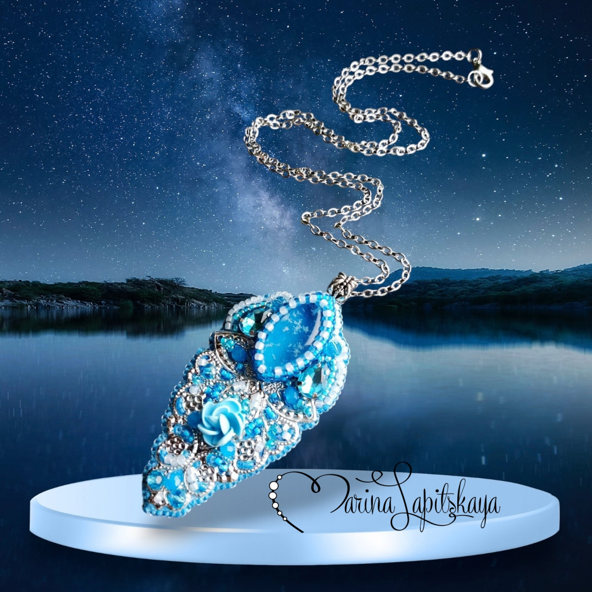 Если бы не облачка в кабошоне, я бы тоже подумала в сторону морского названия, но уж больно камешек небесный)