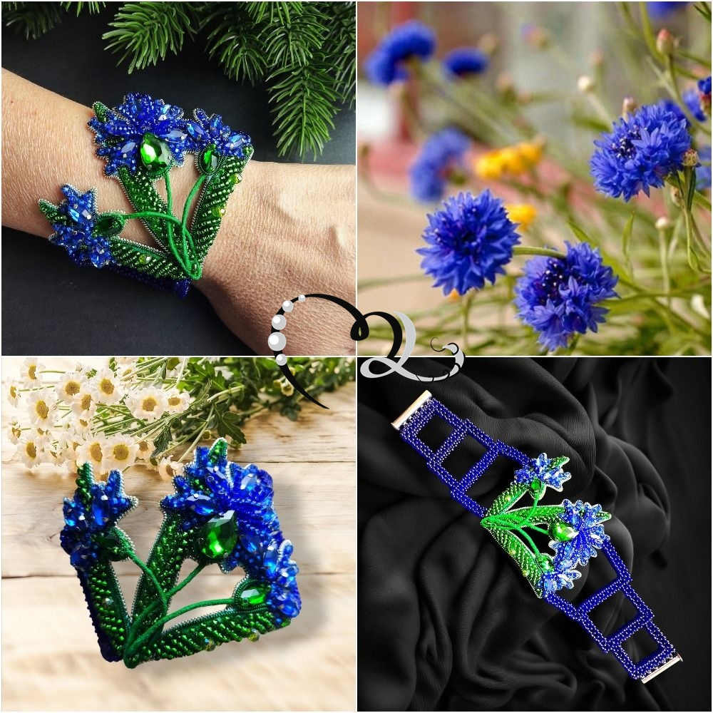 Заказали недавно вот такой комплект. В принципе, броши с васильками делаю часто, а тут вместо броши — подвеска, а к ней — серьги, кольцо и браслет)