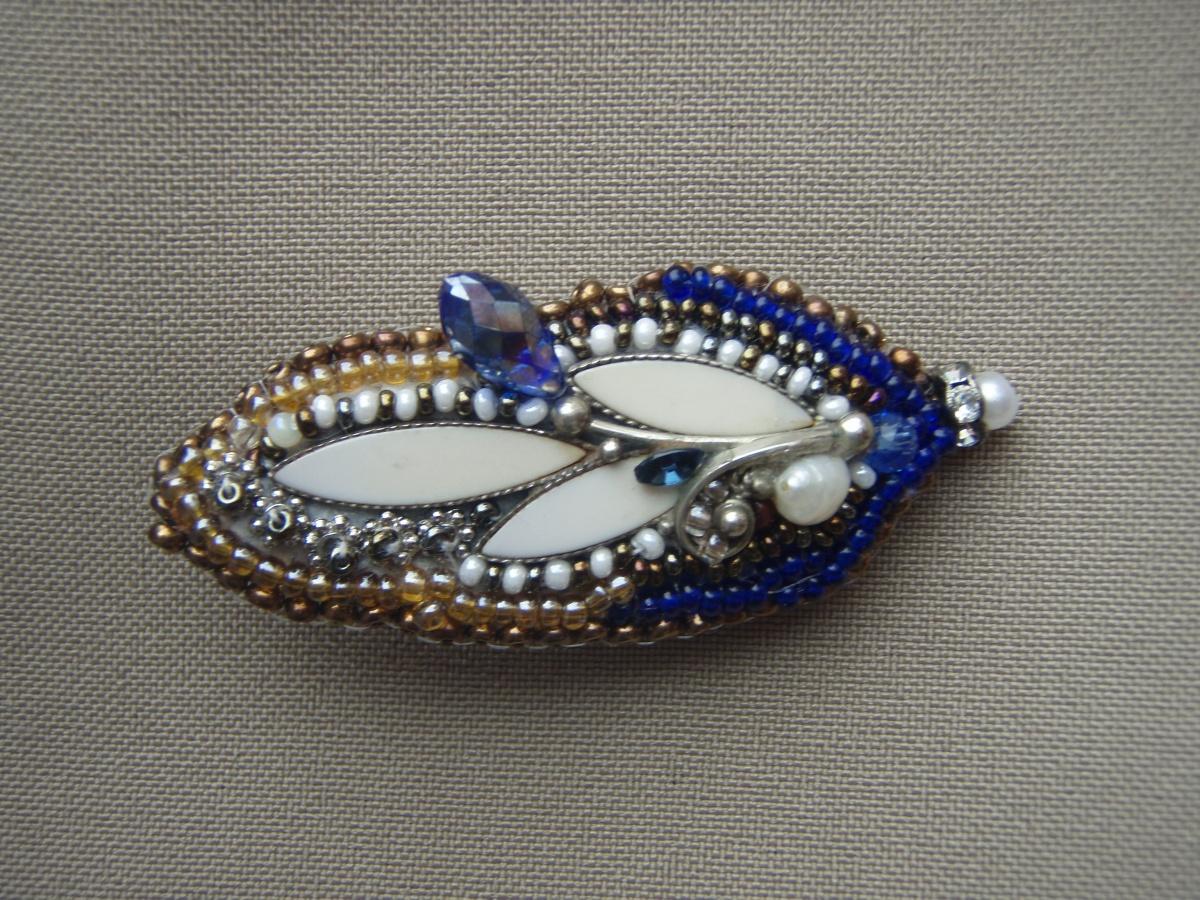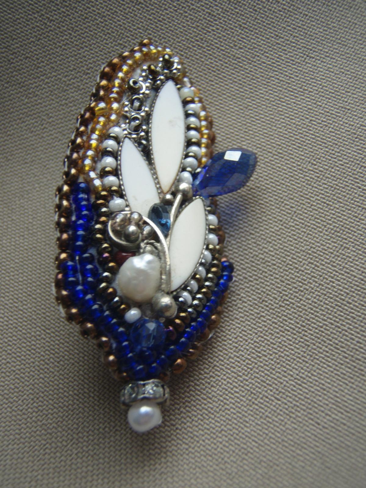 Из одного комплекта когда-то любимого, получилось 3 брошки, которые носят дорогие мне люди! Не судите строго, не удалось в этой брошечке спрятать некоторые огрехи.А так к душе получилась.Цвет подбирала к бежевому жакету с темно-синей блузкой с бежевыми маленькими листиками