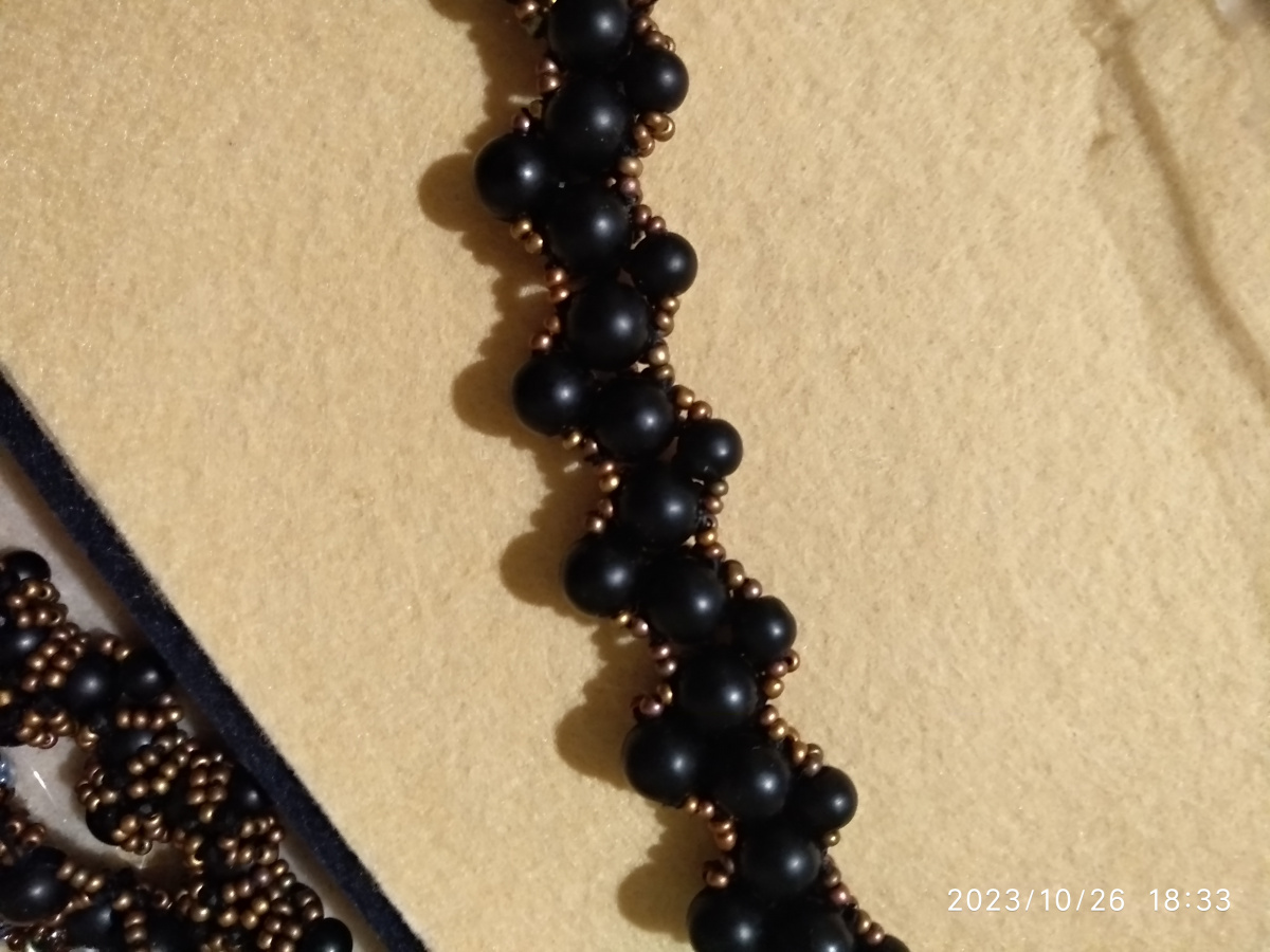 Милые бусинки выкладываю колье, выполненное по всем известноц схеме зигзаг. Расшила бисером.