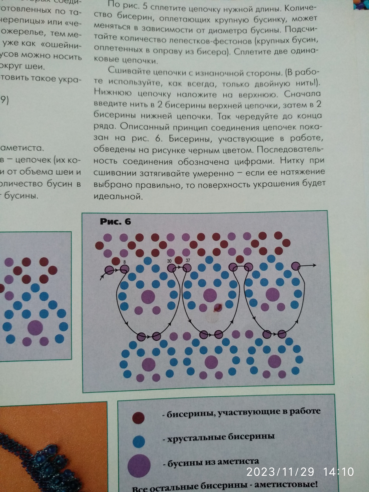 Схема сшивания выше, в книге 2 яруса. Можно сколько угодно. Но чем больше ярусов, тем менее закругленное колье, поэтому в середине типа кулона