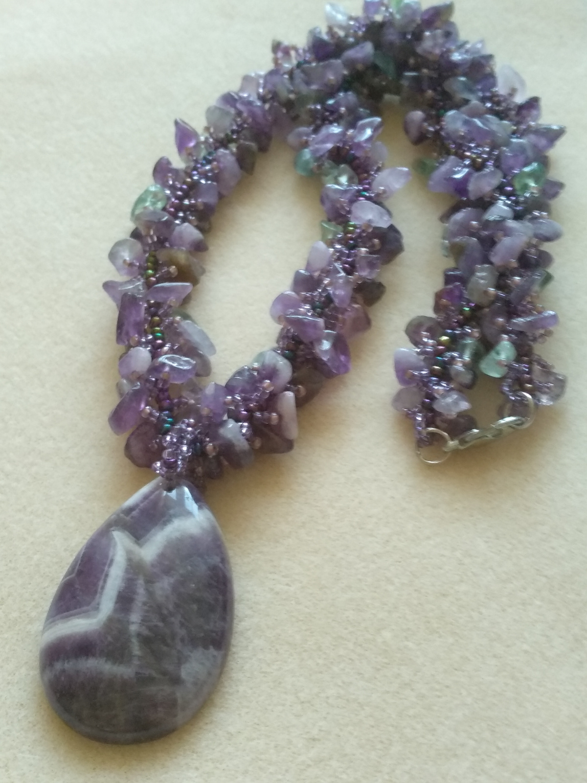 . Раньше плела просто из аметиста, в голову даже не приходило чем-то дополнить, чтобы и освежить и цветовую гамму аметиста не нарушить. Прошло 15 лет… мысль наконец-то пришла