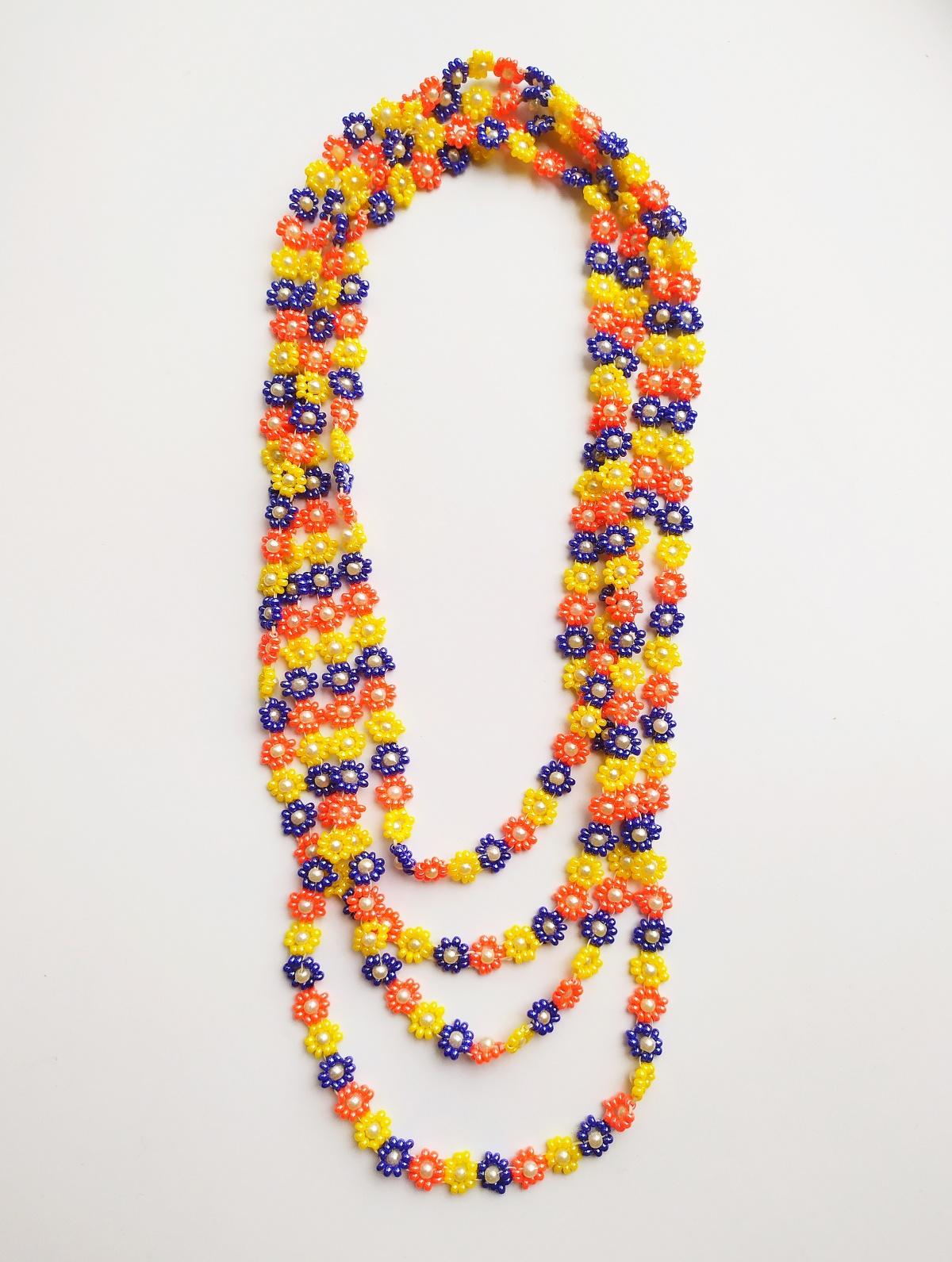 Простенькая, проще некуда. Ей лет 20, сплетена на заре освоения премудростей бисероплетения. Носила я ее часто, особенно с рыжим свитером.
