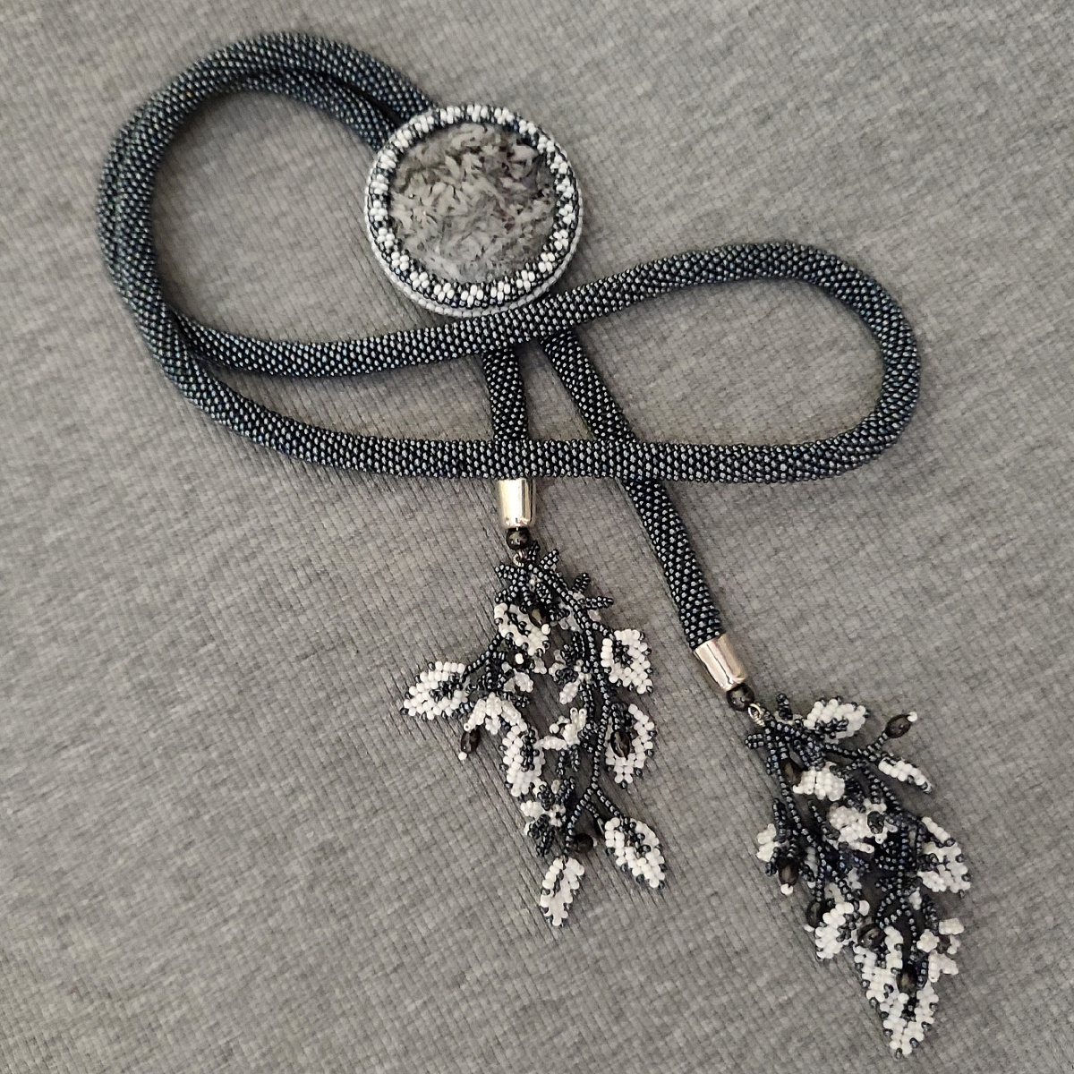 О, а я про такой камень и не слышала. А красавец какой!!! И галстучек получился чудесный! Смотрится очень свежо и весело, хоть и серенький! Замечательно обыгран!!!
