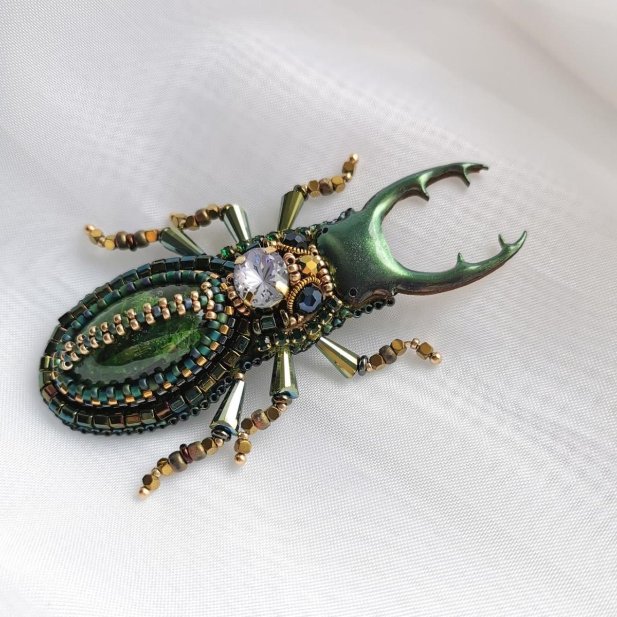 Всем здравствуйте! Продолжаю пополнять альбом. Опять броши, что-то в последнее время я их стала много делать. Жук Олень с хромдиопсидом