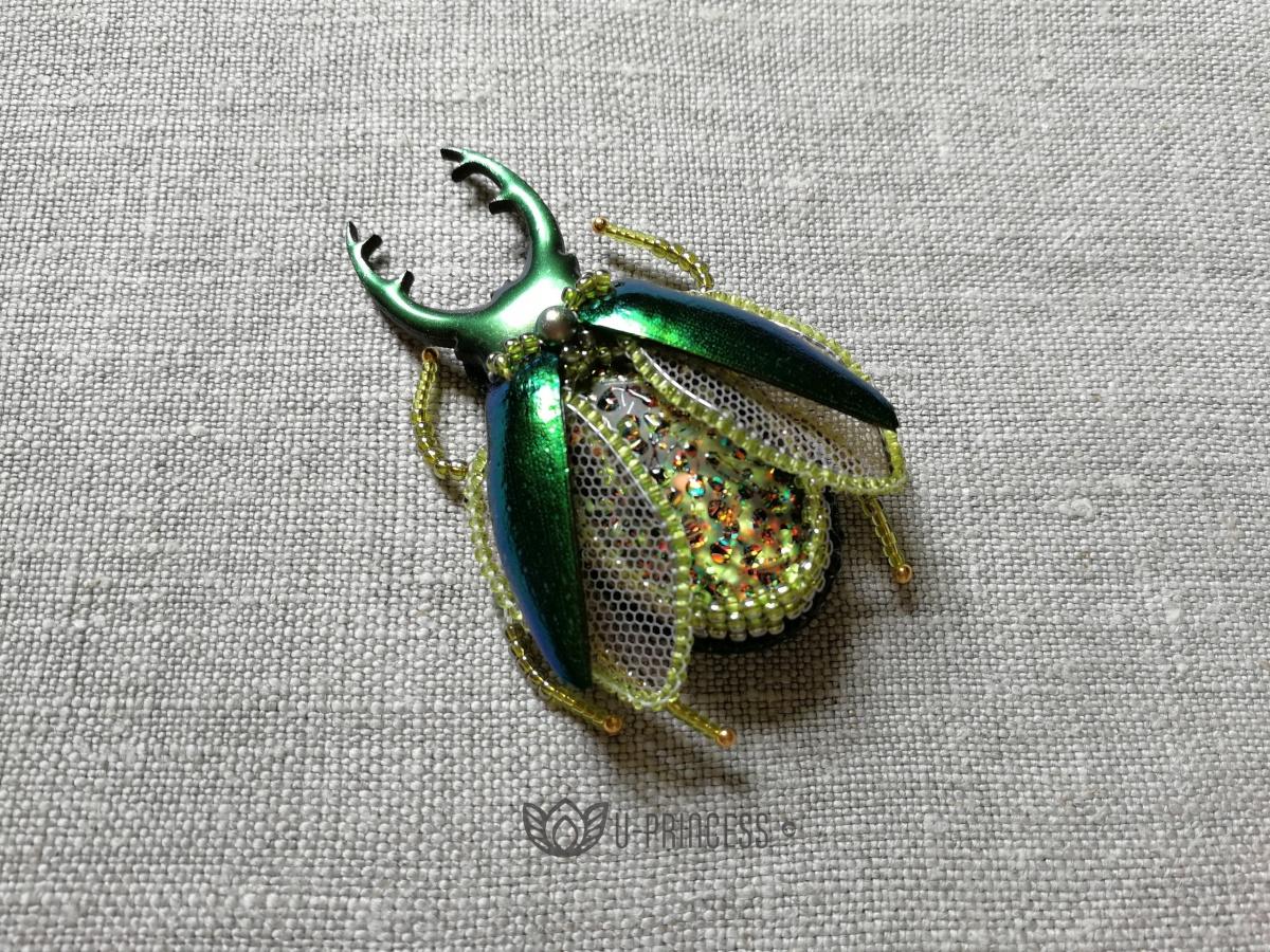 Жопки и рога ручной работы. Нижние крылышки — органза. Верхние — надкрылья златки разных оттенков.