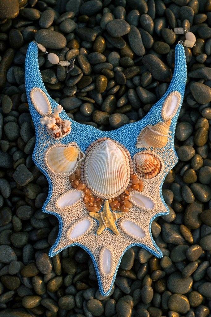 Ох, какое красивое колье!!! Такое морское!!! Так мне нравится эта набегающая волна на песок, где смешиваются цвета голубой и песочный!!! Очень позитивное колье!!! А когда же уже на модели покажешь? ))Очень люблю твои фото… Надеюсь моделью ты будешь?