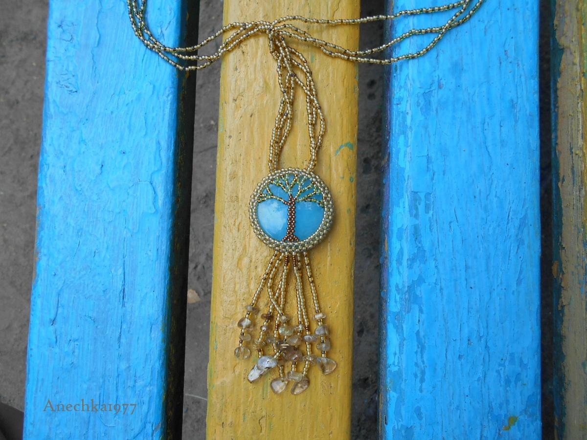 Сначала пыталась намудрить двусторонний кулон, с одной стороны лето, с другой — осень, или нет, весна — зима, нет, весна — лето… В результате односторонний кулон, то ли осень то ли лето, а на изнанке неудавшееся непропорциональное дерево)))