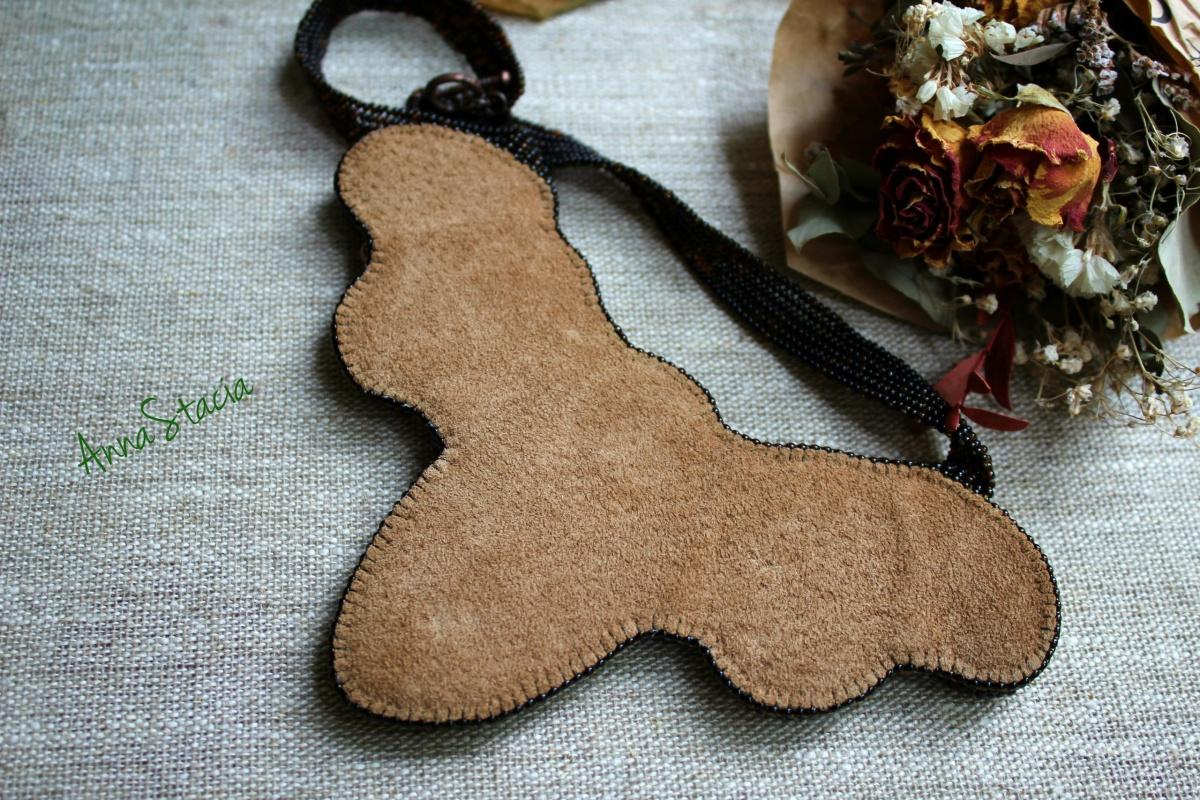 Колье — итог пристраивания среза агата, он довольно большой для меня. Длина — 44,5 см; вышитой части — 12,5 х 9 см. Результат мне нравится. Вышитая часть полностью японский бисер. Подвешено на бисерные ленты из чеха. На человеке фото нет