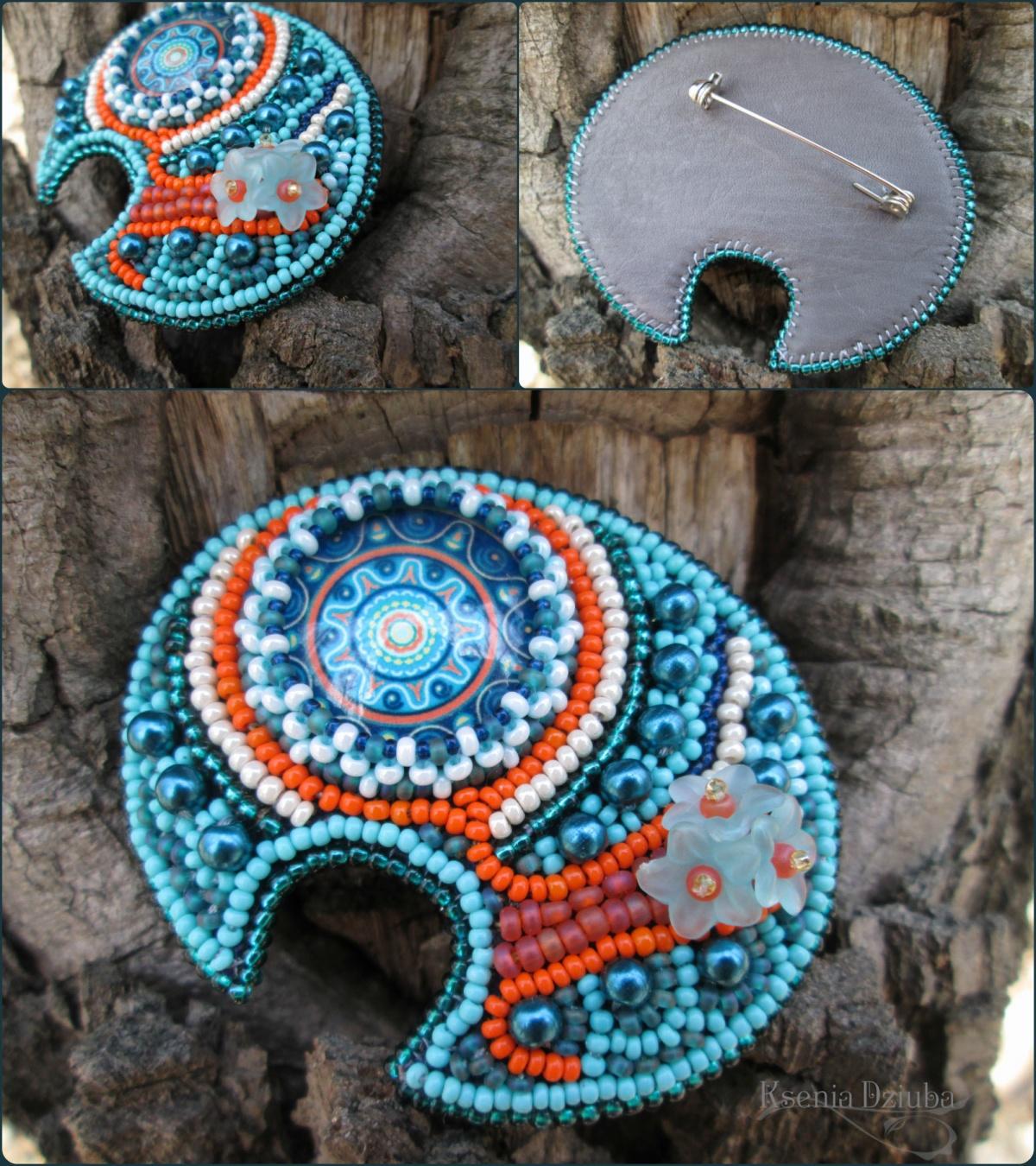 А вот эта подружка вызвала просто шквал эмоций — прям психологический тест, а не брошка. Кто-то увидел мультяшного попугая Кешу, кто-то — психоделический цветок с листиком, а у некоторых вообще эротические фантазии разгулялись от увиденного (прямо по Фрейду, ага)… Добавила цветочков, нечего народ смущать