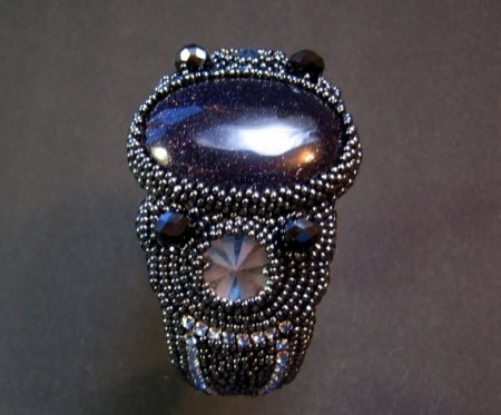 Авантюрин(синее стекло), сварики, стразовая лента.