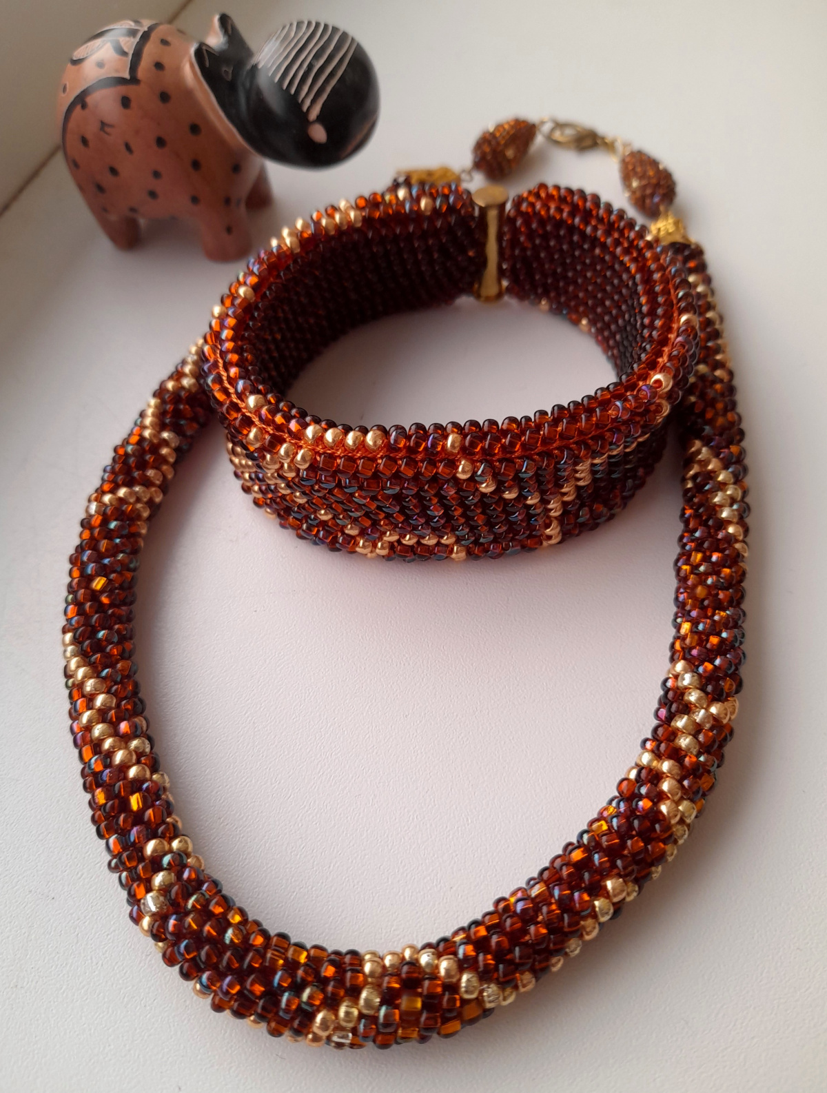 Сделать хотела ( утюг) змею — (слон )жираф получился вдруг . Это я пытаюсь освоить разные с пособы вязания. Комплект получился ярким, искристым и довольно милым (бисер «огонек»-сила!!!)
