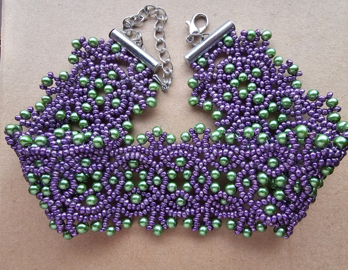 Роскошное плетение! И все так гладко, ровно — Сама на эту схему посматриваю, но пока не бралась. Вот, может с вашей подачи всетки сподвигнусь. Здесь бусинки 4 мм, да?