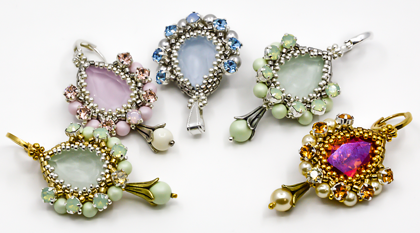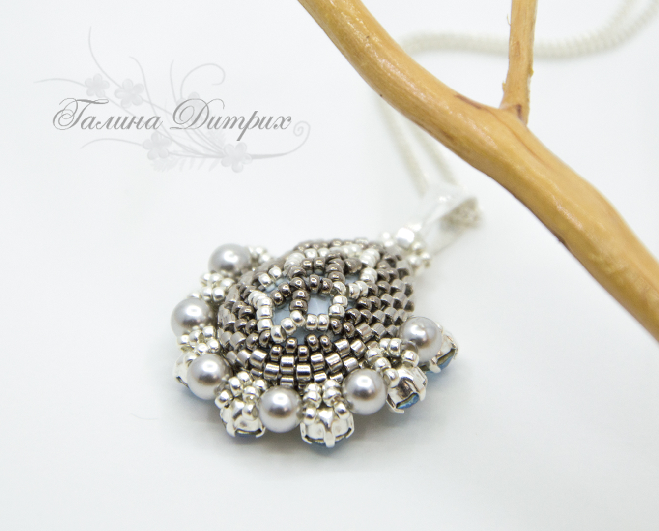 Палладиевый и серебряный японский бисер, пастельный хрусталь Сваровски из коллекции сезона Весна-Лето 2016: