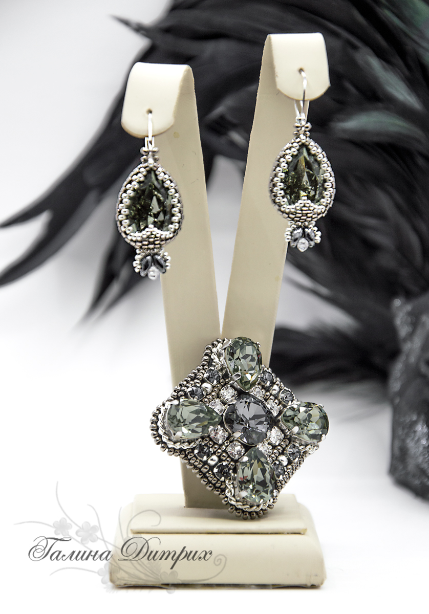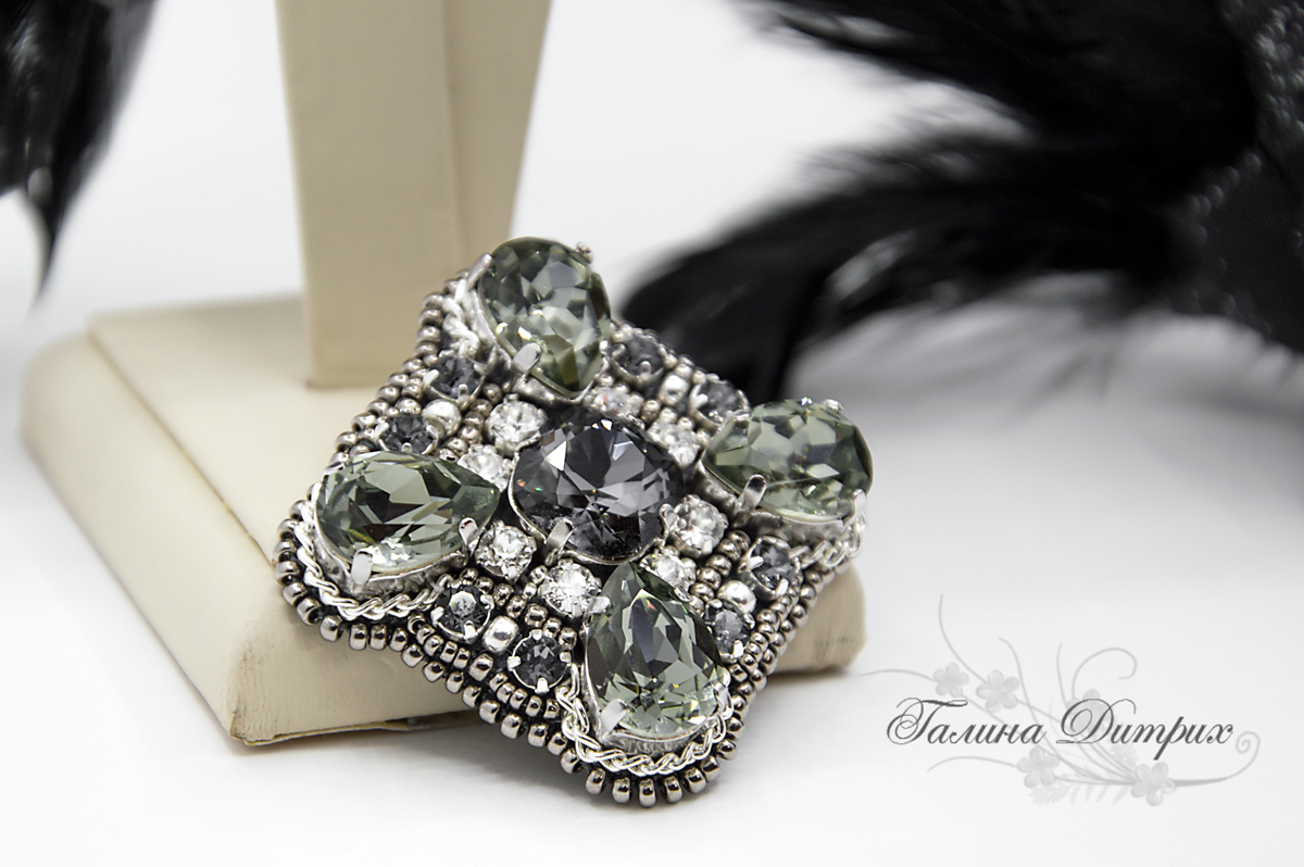 Здесь капельки цвета Black Diamond, центральный элемент Silver Night и шатонки Crystal. Частичка этапа создания ордена: