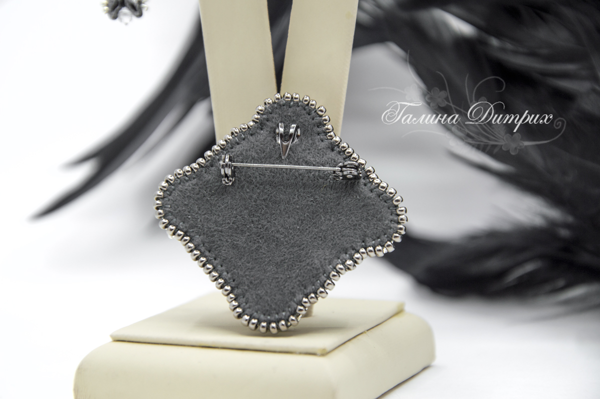 Кулон-брошь: орден «Черный алмаз» — по мотивам моего «Гранатового ордена» в комплект к серьгам «Пиковая дама». Орден «Черного алмаза» дают за спокойствие и мудрость. Ведь, как говорится, «между черным и белым множество оттенков серого»