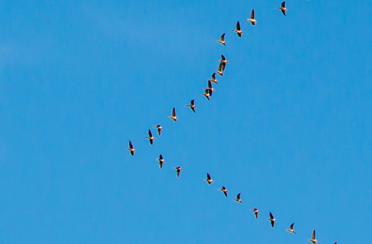 Идея этого колье пришла в майском путешествии в Казань, где мы увидели большую стаю крупных птиц, летящих клином прямо над центром города, они так меня впечатлили, что я их фотографировала, а дома рассмотрела в большом приближении, оказалось, что это утки, но у меня в голове уже засели журавли, поэтому колье называется «Журавлиная стая»