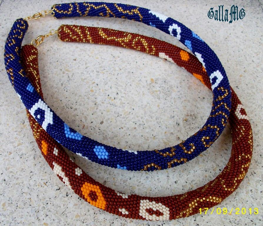 Жгуты на 15 бис.(синий) и 18 бис.(коричневый) из чешского бисера № 10 по схемам Елены Сомертон (Dominanta)… Жгуты набирались легко и связались они быстро.