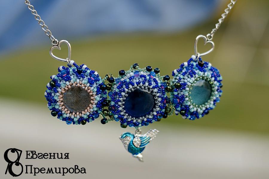 Колье очень простое, на каждый день. Делала специально для наряда блуза (рубашка)+ джинсы. Стеклянные кабошончики, чешский и японский бисер, да подвесочка (когда-то кто-то подарил).