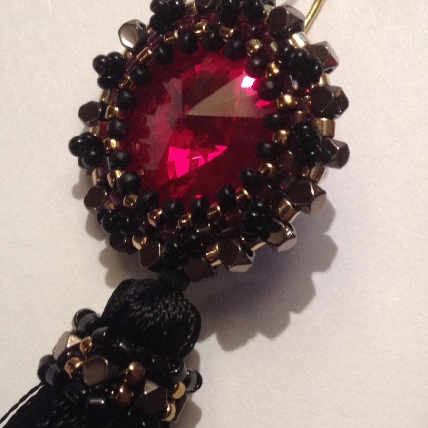 Всем бусинкам привет! Я на своем любимом коньке- очередными сережками.Который сезон, как говорится, такие (шелковые)в трендЕ, а я вот только, сподобилась, хотя сами кисточки давно были куплены. Набрала разного цвета, и чувствую… понесет меня опять )) Можно, конечно, было сделать упрощенный вариант; готовый колпачок, штифт, бусина… и результат был бы не хуже, они универсальны, но мне в кайф -поплести!