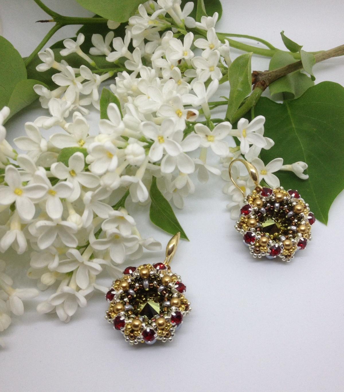 Новые, праздничные, деньрожденьские! Продолжаю эксперименты с шатонами Сваровски. Риволь 14р., шатоны 4,0. Так что, размерчик получился средний.