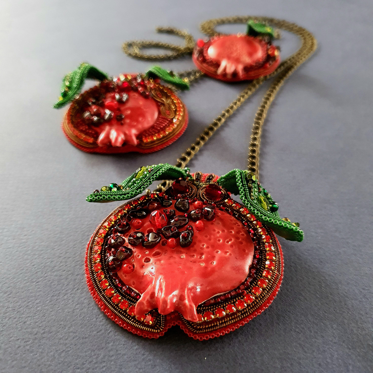 Броши-кулоны"Гранатовое счастье"
