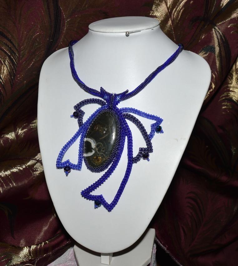 Колье делал муж по одному из эскизов, делал еще по весне, но добавляю в альбом только сейчас(флешмоб был в понедельник).Колье легкое, но немаленькое, собственно, немаленькое благодаря камню с аммонитами-уж очень хотелось его пристроить небанально.Мне нравится!!!