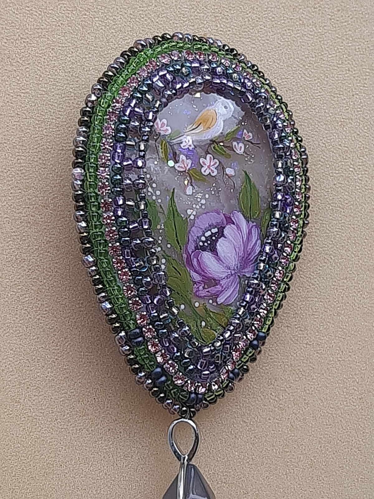 Сегодня день продуктивный-готовы две брошки.первая-«Песня весеннего утра» с росписью на агате от Ирочки(эмили)