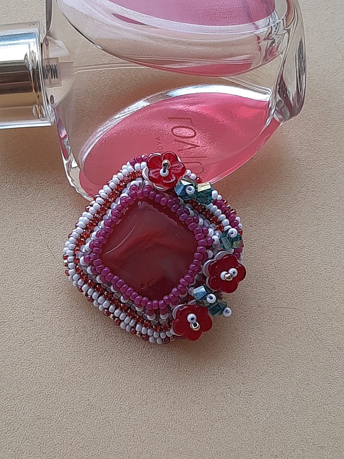 Крайне редко использую кабошоны с прямыми углами, но этот сердолик не капризничал и в подборе декора не протестовал