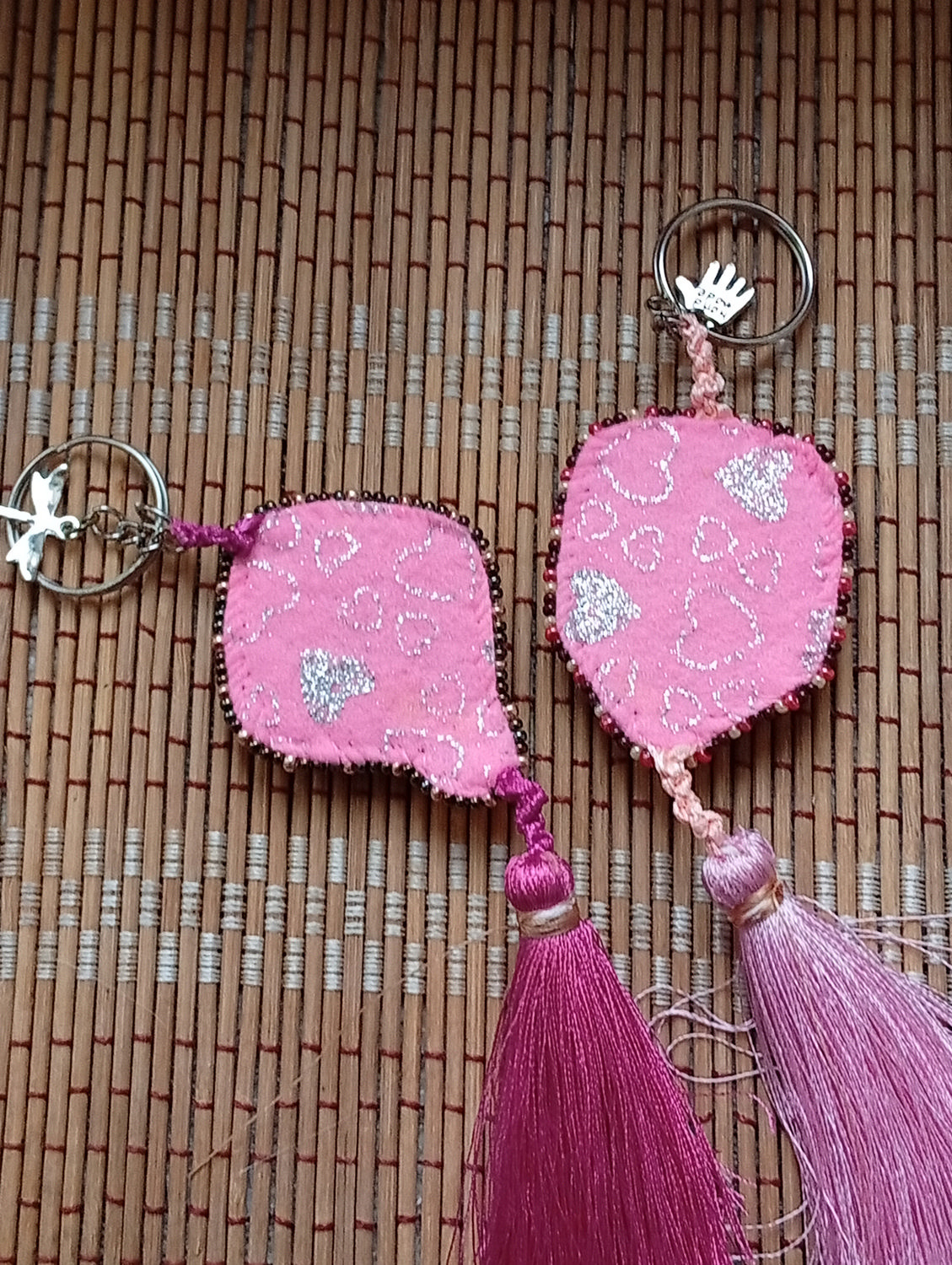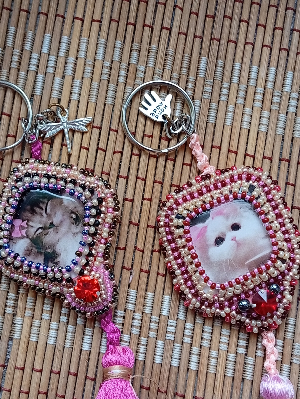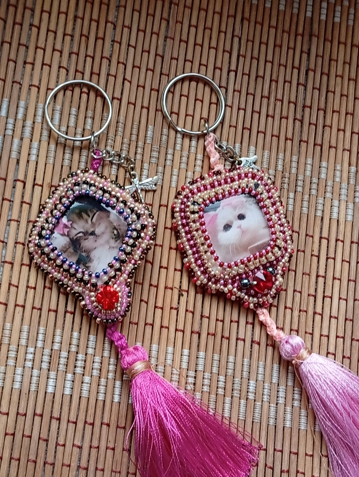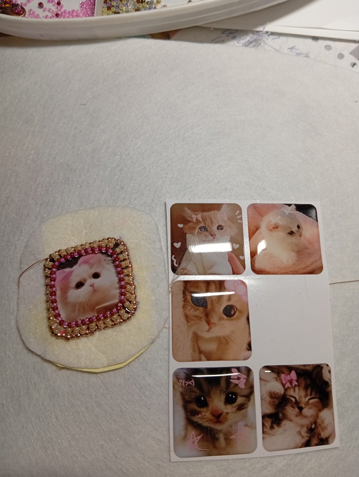 Это чисто опытные штучки, на основе стикеров, просто захотелось попробовать их так использовать, продаются они по 6 шт, изнанка липкая, я увеличила высоту толстым розовым фетром, а дальше обшивка как простой кабошон, на изнанке тоже фетр, он не ворсится и для этого дела хорошо подходит-брелок дело вертлявое, изнанка блестящая сама по себе хороша,