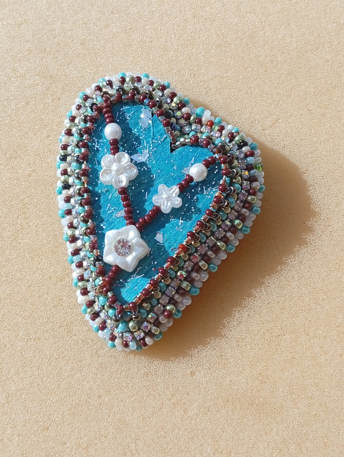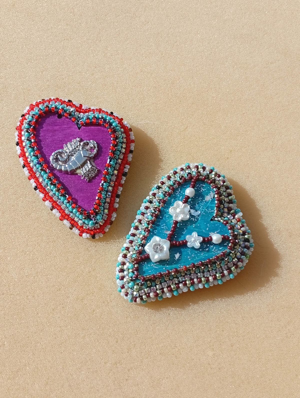 Остались две деревянные заготовки-сердечки, превратила их в брошки, вышли легкие и яркие