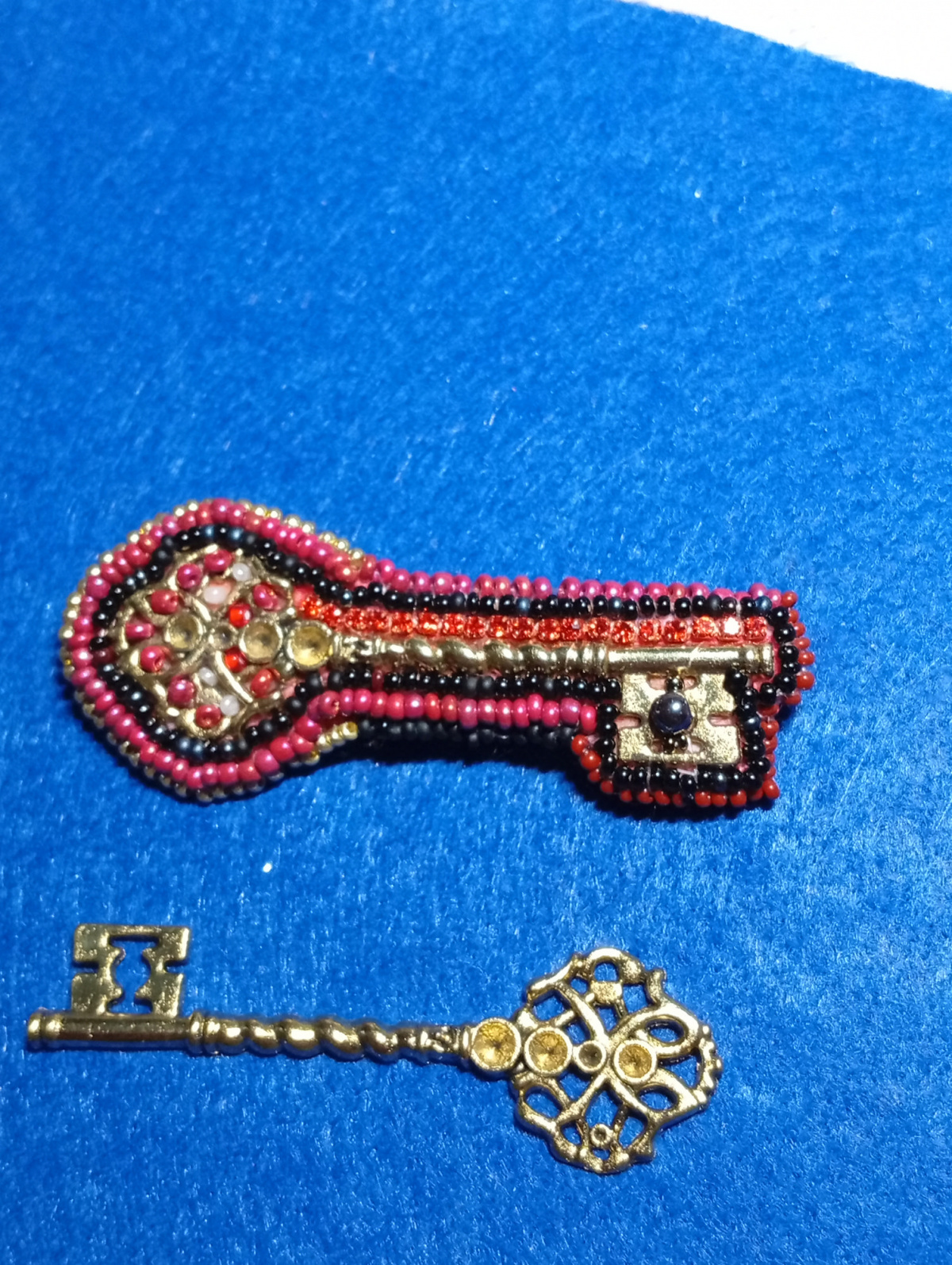 Декоративный ключик(продаются парой) превратился в брошку, не особо довольна результатом, но будет так