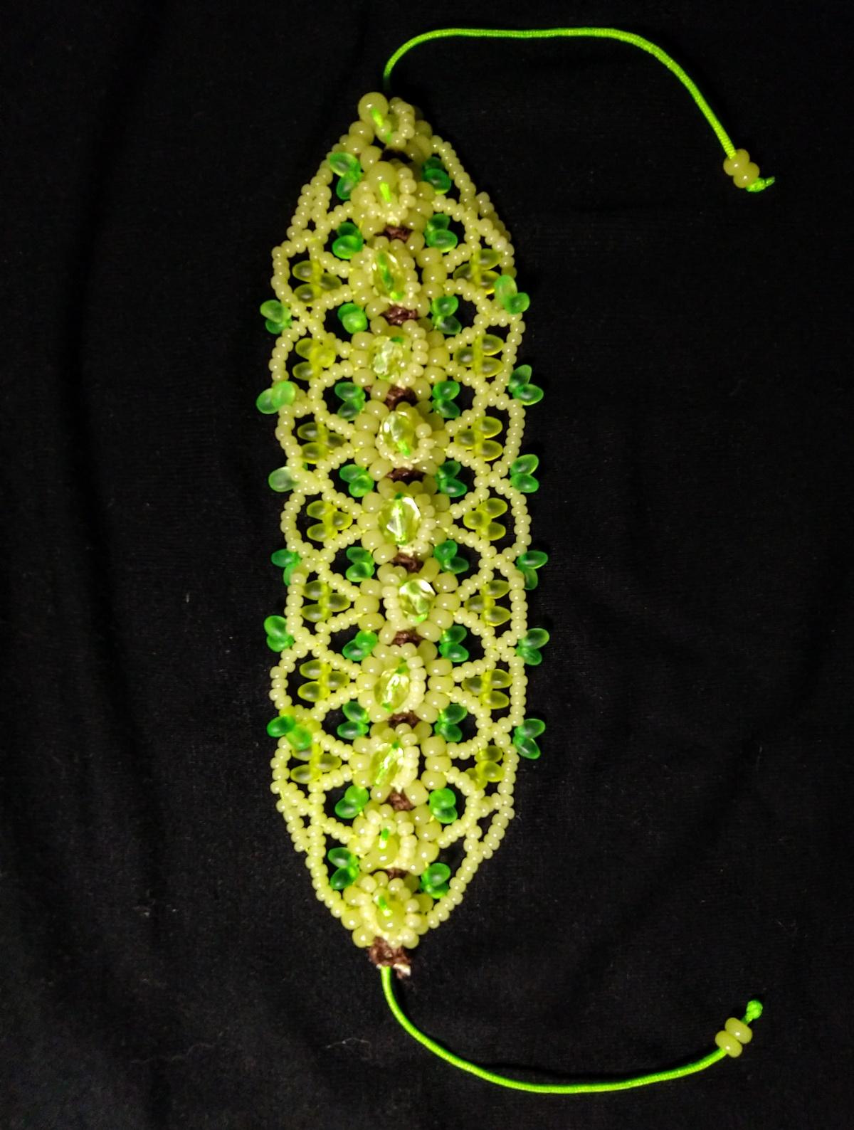 Пара браслетов из уранового стекла. Кружевной широкий стал долгостроем. Никак не хотел получаться. Рвался, отказывался лежать ровно, переделала раз шесть, но победила. Вышло симпатично.