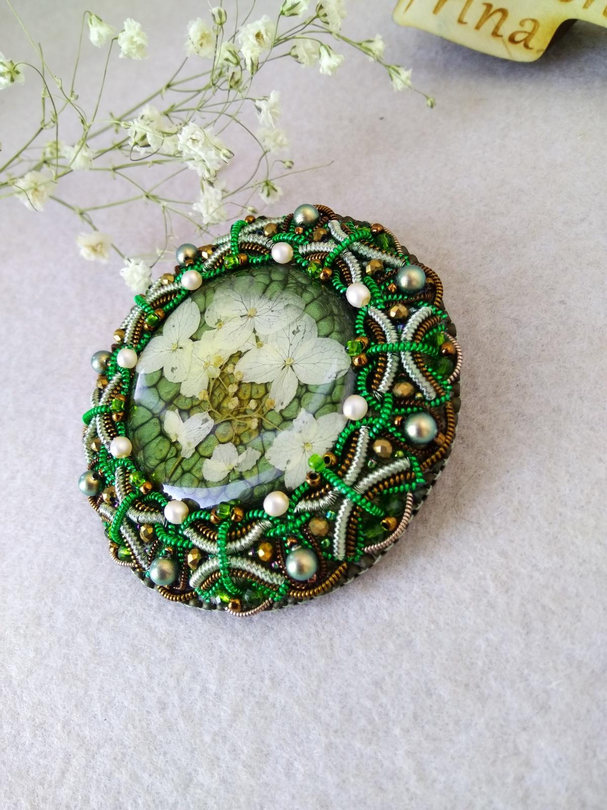 Доброго времени суток! Решила «выйти из подполья»: пополнить альбом и показать вам свои работы)) Мне всегда интересно осваивать новые техники и материалы. На карантине обучаюсь на курсе Канитель_Е Александры Рупека. Вот и первая брошь, которая, возможно станет и кулоном. Кабошон от нашей Марины Murarisa