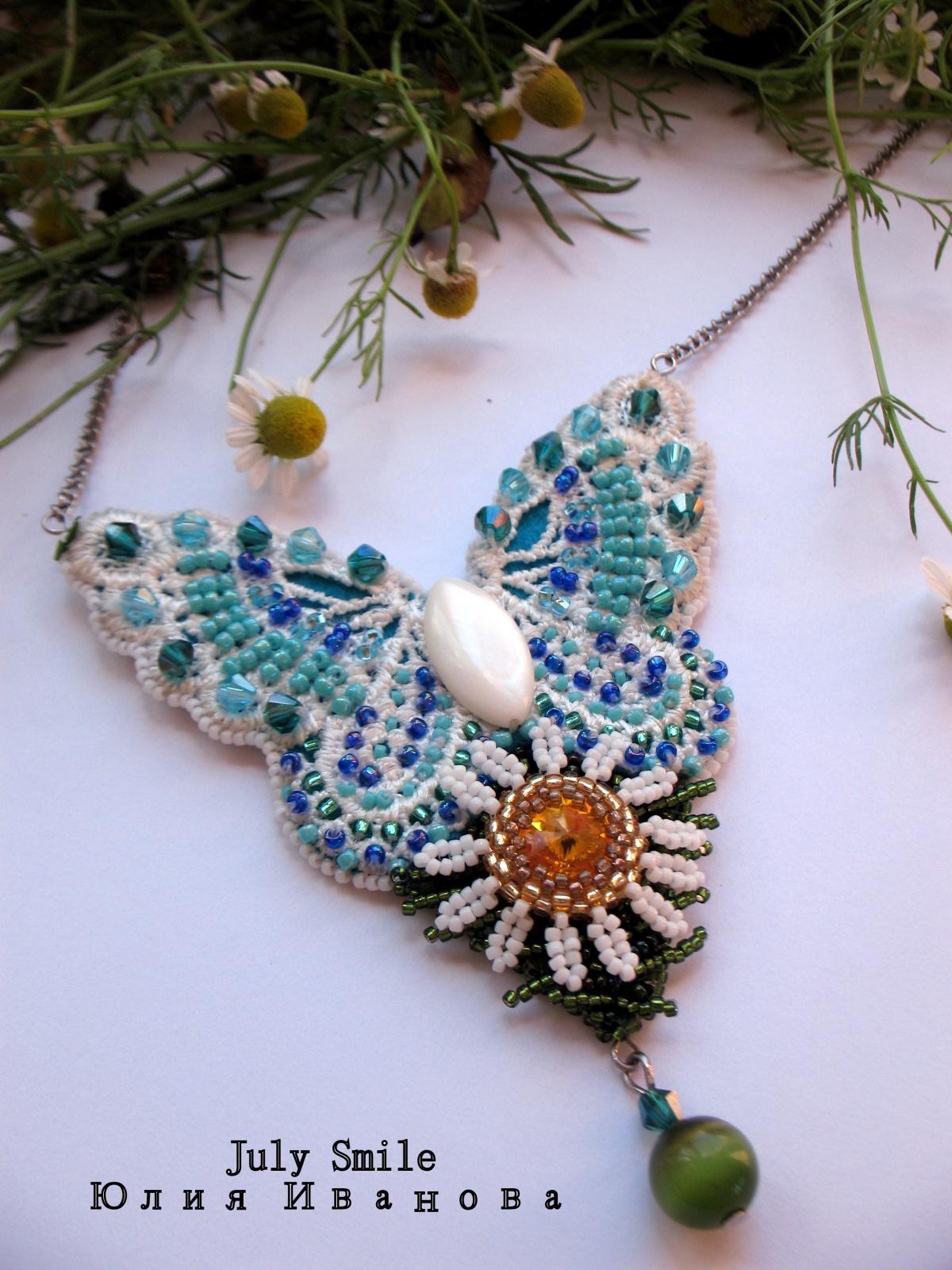 Ну что может быть лучше, чем прогуляться по ромашковому полю, полюбоваться порхающими ангелами… Вот и мою ромашку посетила красавица-бабочка.Кулон создавался на одном дыхании, идея пришла сама собой… И флешмоб оказался как нельзя кстати.Звезды сошлись.А самое главное, что в этот потрясающе светлый праздник, год назад родился мой третий ребенок, моя Полиночка! Я рада безмерно и хочу поделиться с вами своим счастьем!
