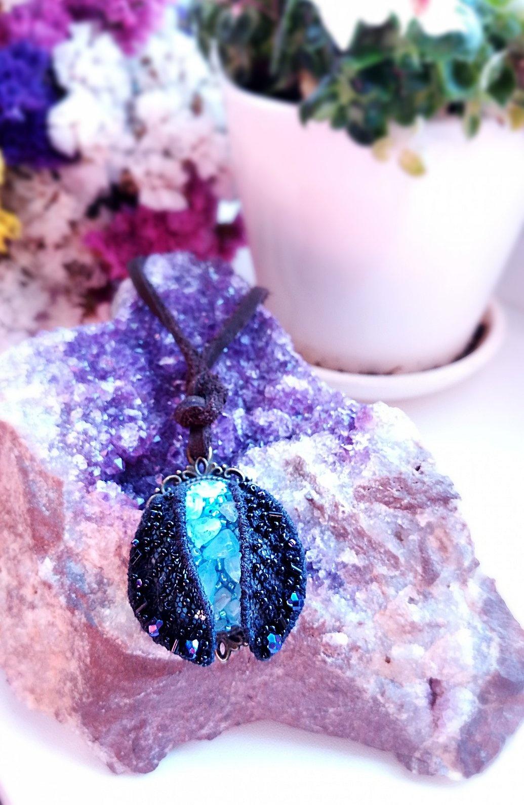 На выступающие места цералуна (между камней) я нанесла синюю пудру от пастельного мелка.
